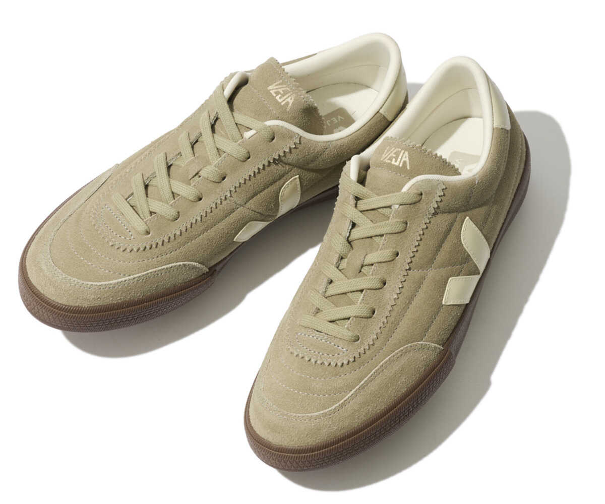 トウの補強やアッパーのキルティング、ガムカラーのラバーソールなど、クラシックなサッカーシューズを彷彿とさせるデザインが特徴の“パネンカ”。このブランドといえばサステナブルな意識が高い作りが魅力で、スウェード仕立てのオーガニックトレースレザーをはじめ、素材はもちろん資材の運搬にも環境配慮を徹底。
