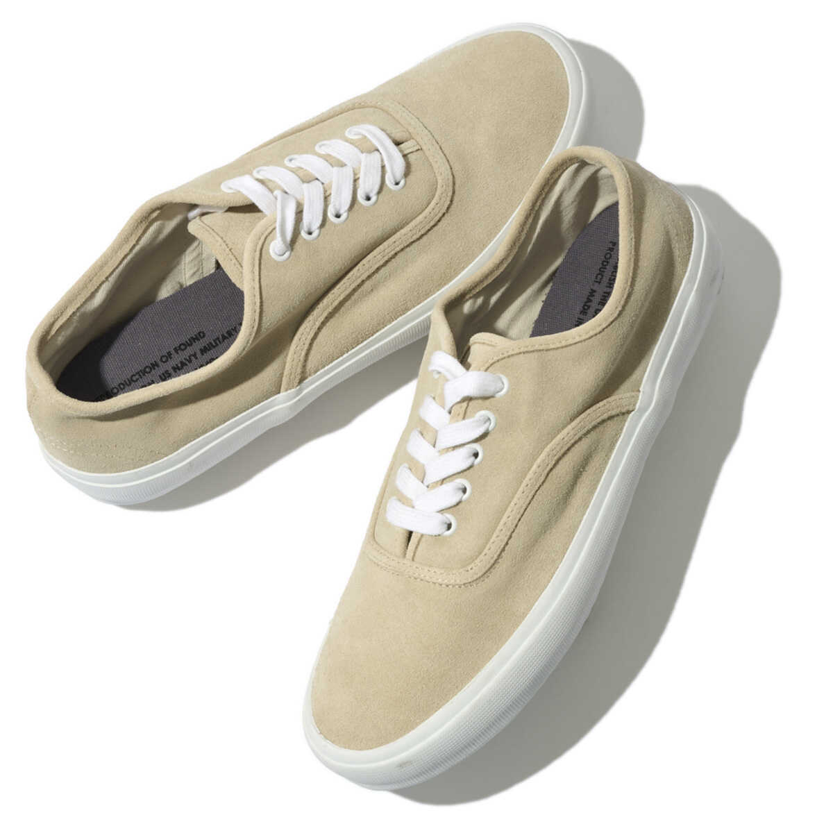 1940年代のUSネイビーのトレーナーシューズを再構築し人気を博したモデルに、ソールのカラー変更を行い、いっそう爽やかな印象に仕立てた1足。NATO軍のシューズを手掛けていたルーマニアの工場にて、ひとつずつハンドメイドで生産しているため、作りのよさは文句なし。アッパーは足当たりが優しい、柔らかなイタリア産牛革スウェード。