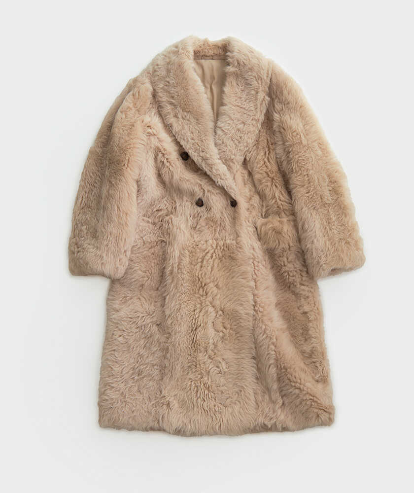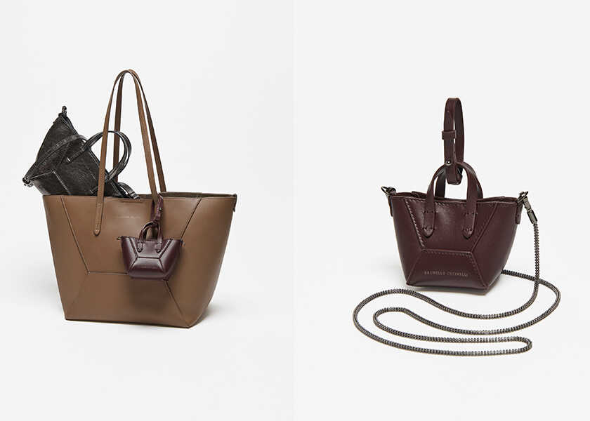 ブランドのシグネチャーショッパーバッグ、BC Duo(デュオ)。ラージ、クラシック、スモール、ミニに次いで日本先行でミクロが登場! バッグチャームとしてはもちろん、チェーンをつければミクロバッグとしても活躍。シェアリングムートン・チェスターコート 196万1300円(ブルネロ クチネリ/ブルネロ クチネリ ジャパン)