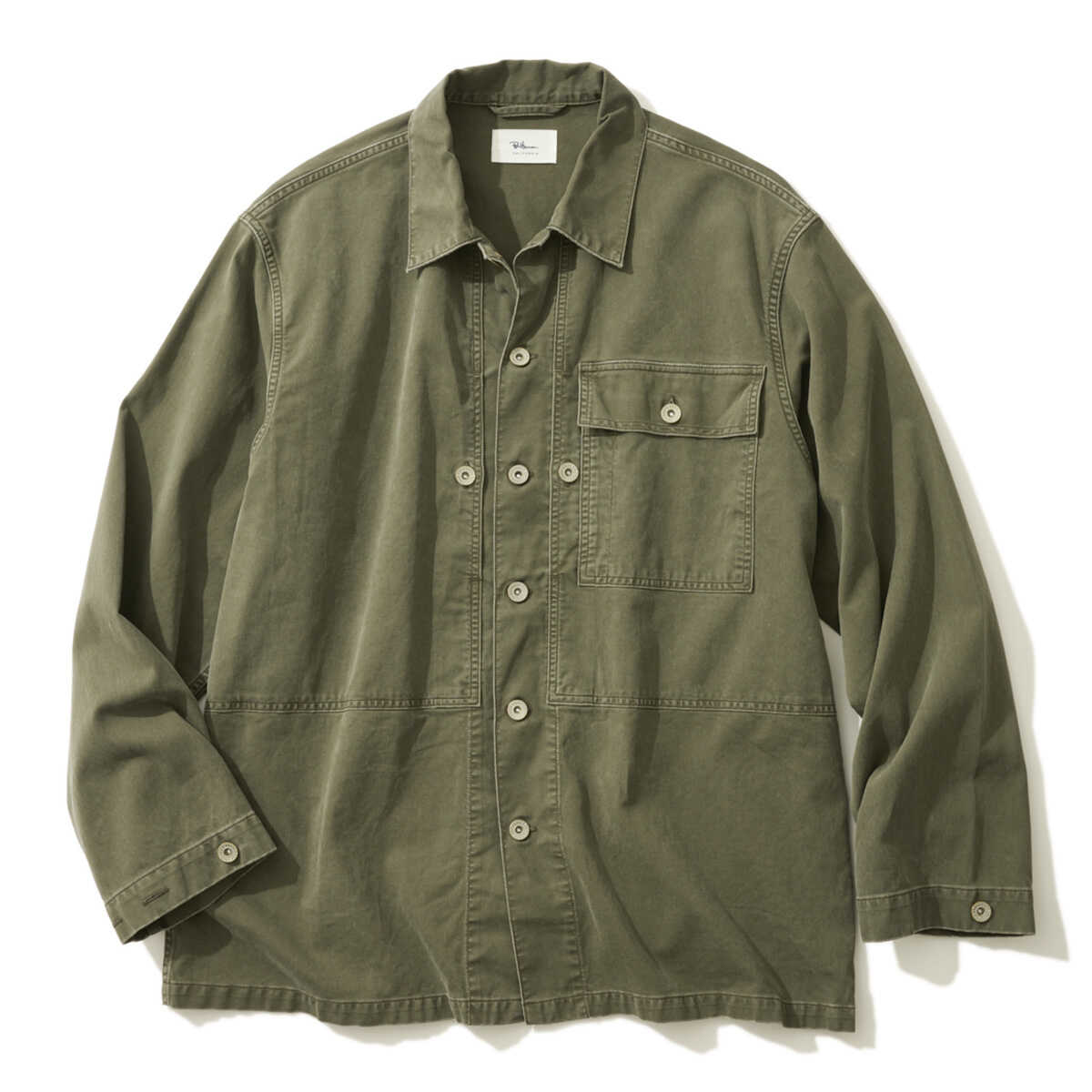 1940年代のアメリカ陸軍や海兵隊で用いられたユーティリティシャツを今っぽいシルエットで再現。身頃がポケット仕様になっているナポレオンポケットや、片胸のフラップポケットなど、細かい要素もしっかり再現している点はお見事。ゆとりあるシルエットに加え裾をスクエアカットした作りもあって、カバーオール感覚でアウターとして羽織れる。