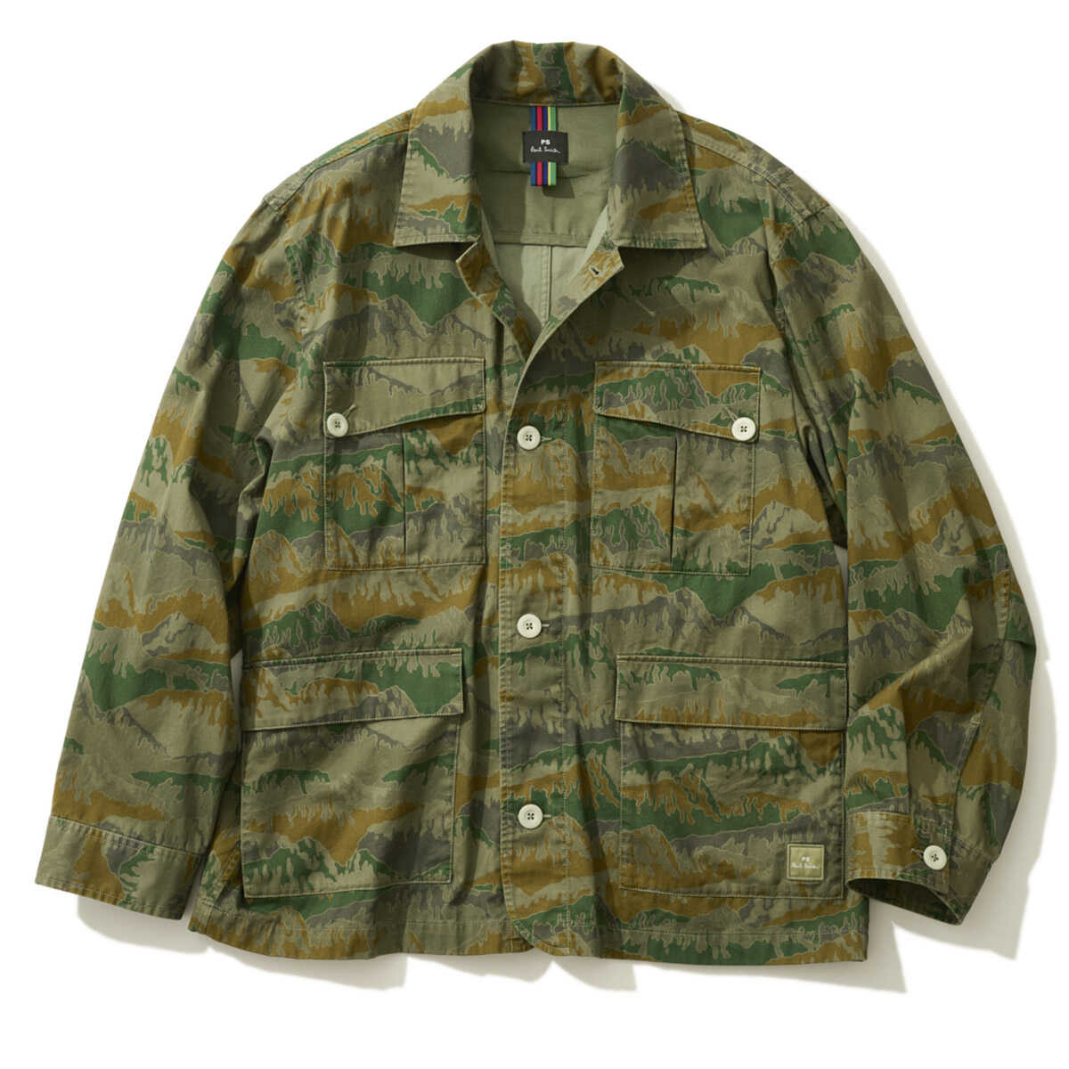 一見ごく普通の迷彩柄をまとった4つポケのミリタリーブルゾンに見えるが、その柄はよく見ると実はなんとアルプス山脈の情景というアーティスティックな1着。生地は肉感を抑えた上質なコットン素材を使うことで、羽織りはもちろんインナー使いもできるよう仕上げている。
