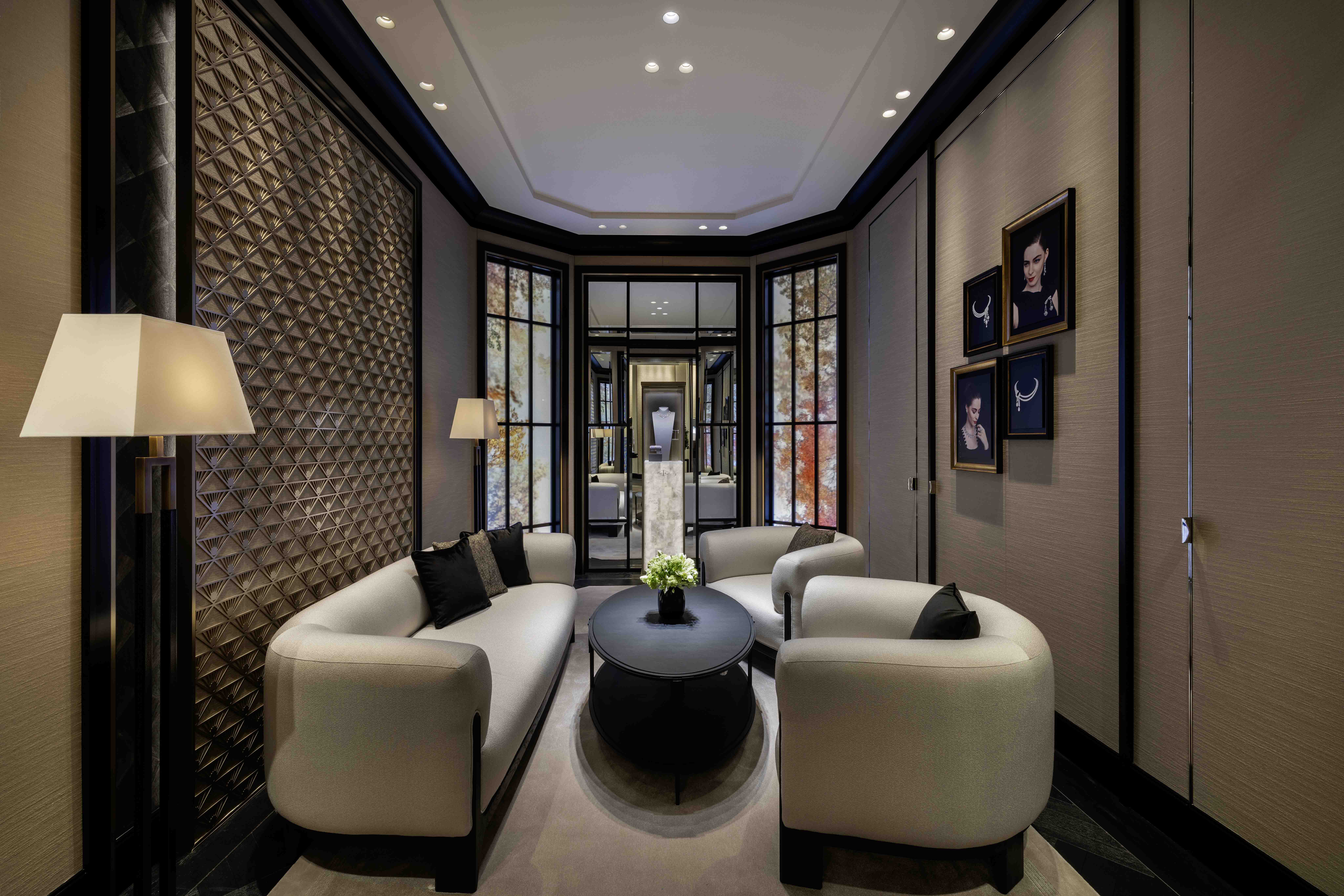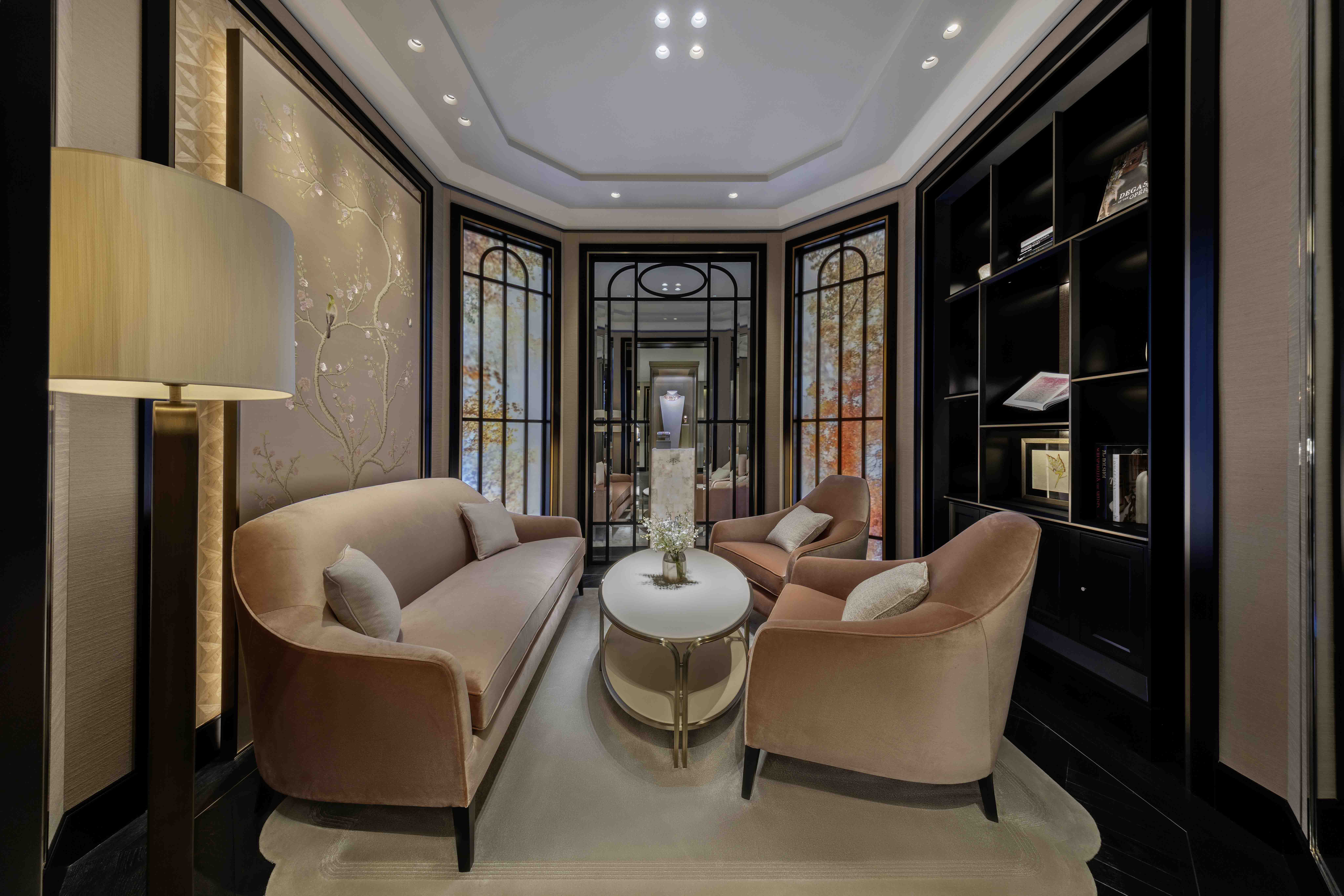 このブティックでは、〈ヴァン クリーフ&アーペル〉の世界観にどっぷりと浸かれる2つのVIPルームも備えている。1階は“アールデコ サロン”。ゴールドを基調にした洗練さが際立つデザインは、粋な気分にさせてくれる。2階は“ポエティック サロン”。1階とは違う柔らかな色調で、女性の心を弾ませる。どちらも〈ヴァン クリーフ&アーペル〉が愛する花や自然が映し出され、メゾンの詩的でポジティブなビジョンが感じられる空間だ。