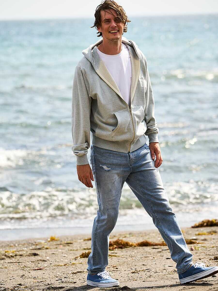 もちろんデニムと合わせて相性バッチリ! 定番のグレーパーカのように使えて、ほのかに色味がある分、差がつく。ややゆったりしたシルエットで、これから先のシーズンになったら中にニットを着るのもおすすめ。