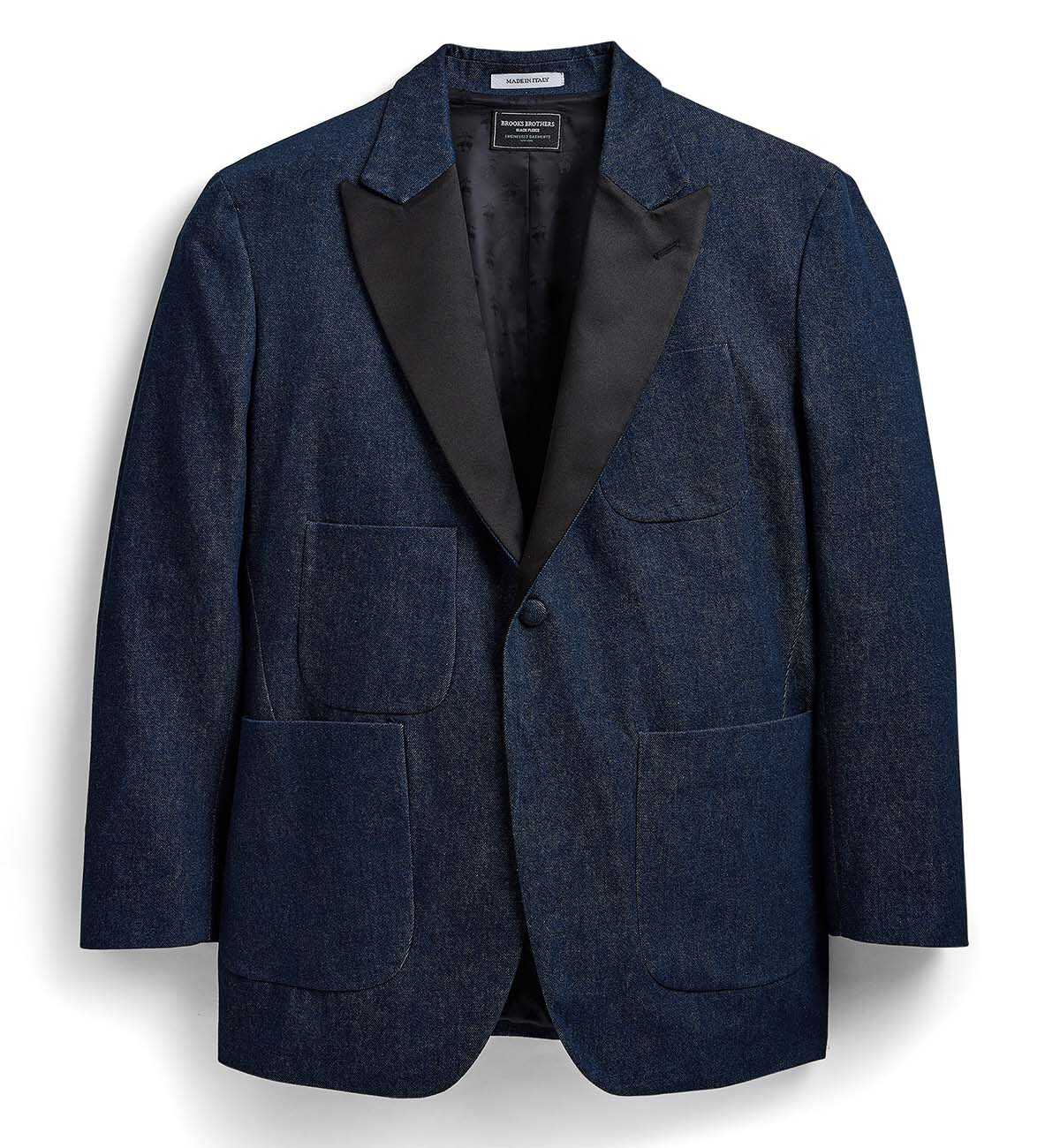 〈ブルックス ブラザーズ〉のクラシックなアイテムに意外性のあるディテールを加えたコレクションでは、たとえば、サテンのピークドラペルで仕上げたデニムのタキシードジャケットに、リラックスフィットのファティーグパンツを組み合わせるなど、様々な試みで大人の男をワクワクさせるスタイルを作り出した。
