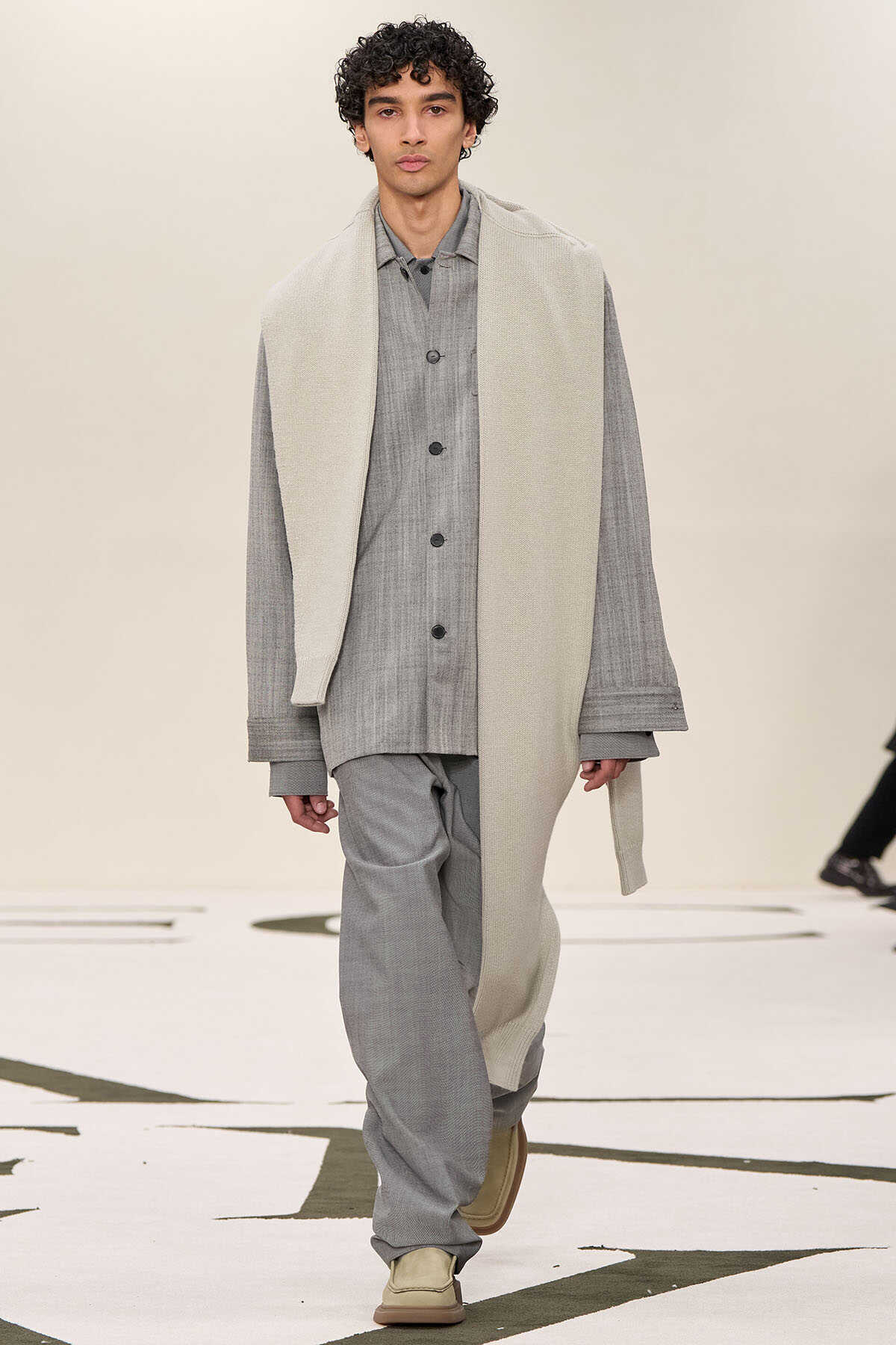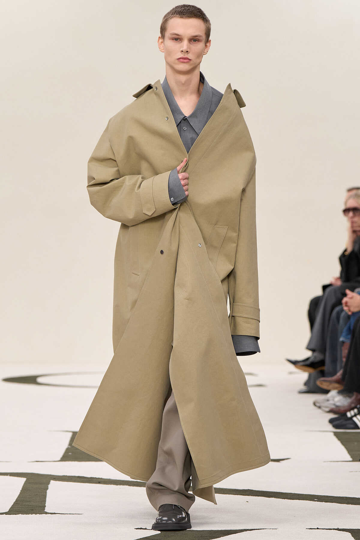オーバーサイズステンカラーコート39万2700円、ドローストリングパンツ17万1600円(以上カルバン・クライン コレクション/カルバン・クライン原宿フラッグシップストア)