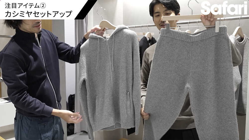 幸太 「カシミヤのセットアップですか、すごいなコレは。贅沢感ありますね〜! コレ、さっそく着てみていいですか?」
