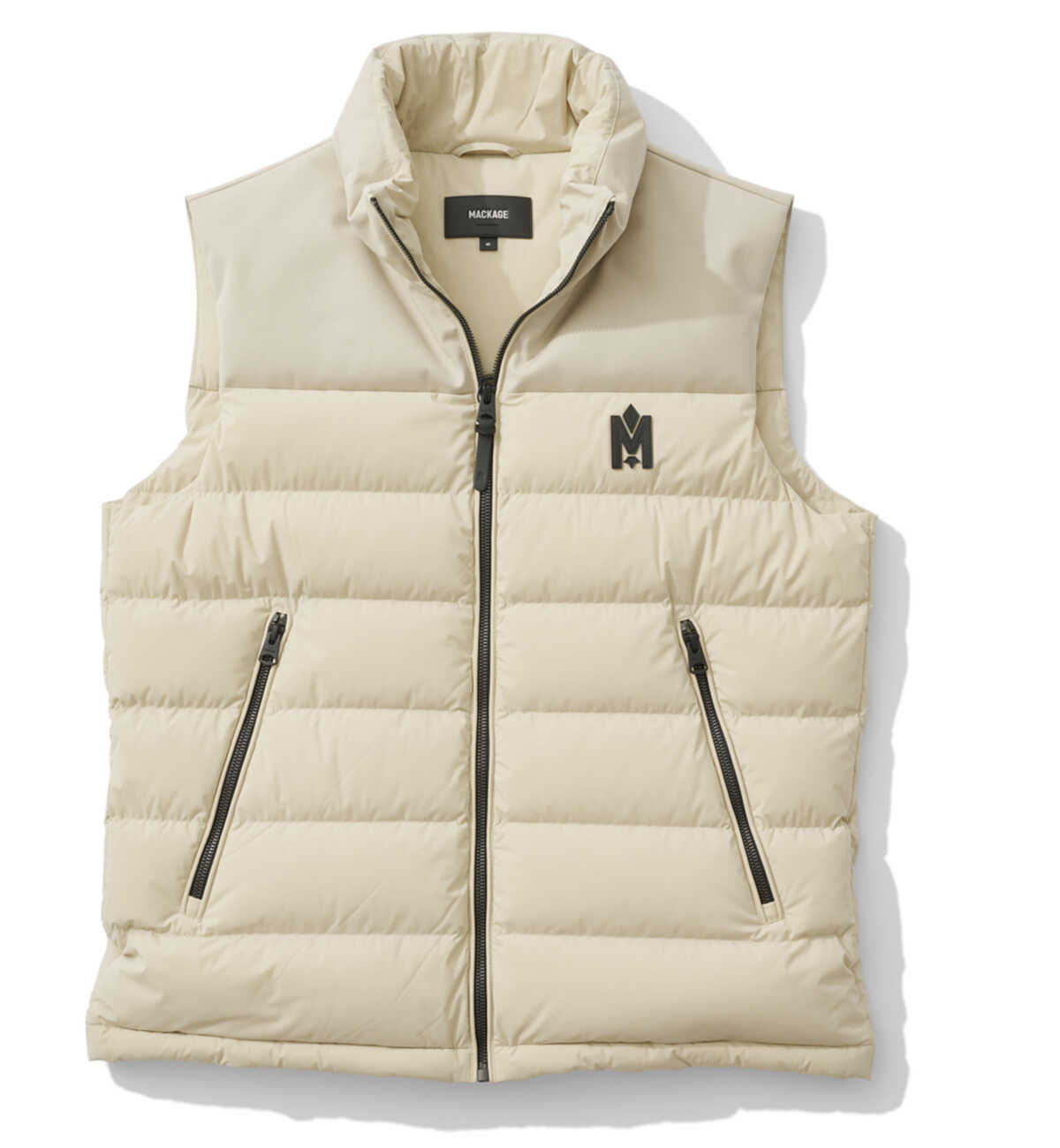 淡いベージュに黒のアイコンモチーフやジップで、コントラストを効かせたモデル“ボビーZ”。マットなテクスチャーの生地は、2WAYストレッチかつ撥水加工を施したハイテク素材。ほどよいほっこり感が大人の優しさを演出。厚さは抑えつつも防寒力の高さとスタイリッシュなシルエットを両立させている。