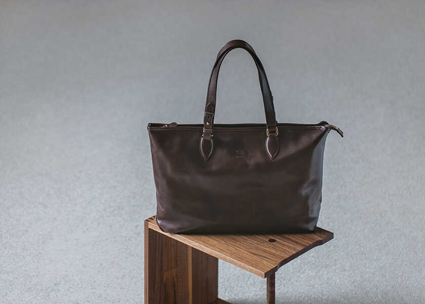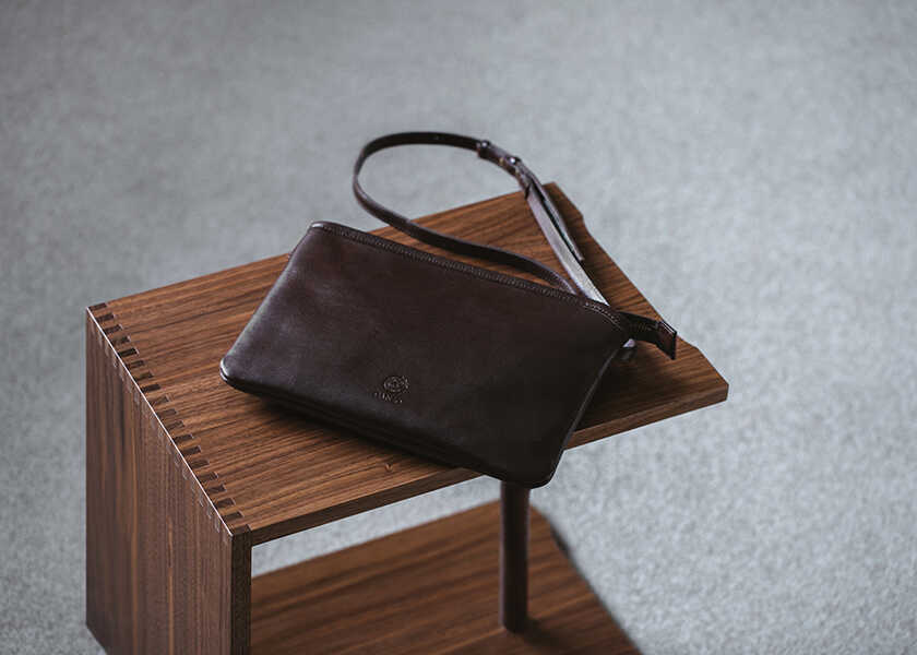 “サケット 5”は、人気のサケットシリーズを継承した上で、フルモデルチェンジしたアイテムたち。北米サンディエゴ産のステア原皮を、姫路の名門タンナーで時間をかけて丁寧になめし、工程の段階で革を水揉みすることによって、表情豊かな革の風合いにしていく。仕上げとしてイタリア製の薬品を使用し、透明感とツヤをしっかりと表現。革は1枚仕立てですっきりと軽やかに。アイテムは、横型ジップトートに縦型ジップトート、サコッシュ(M)、スリングバック、ボストン型クラッチの5スタイルが、ブラックとチョコの2色で展開。