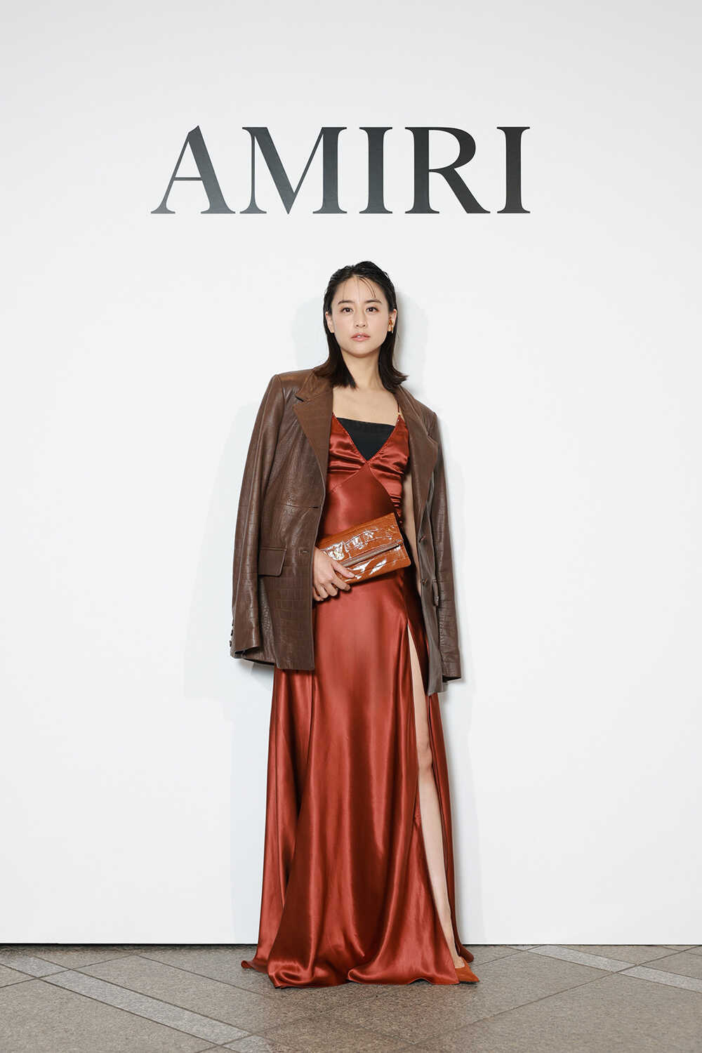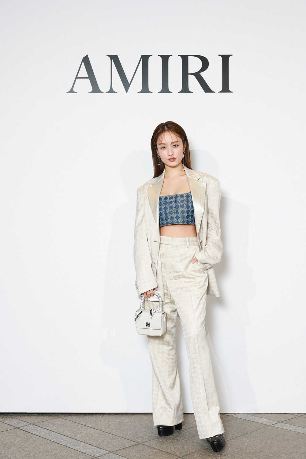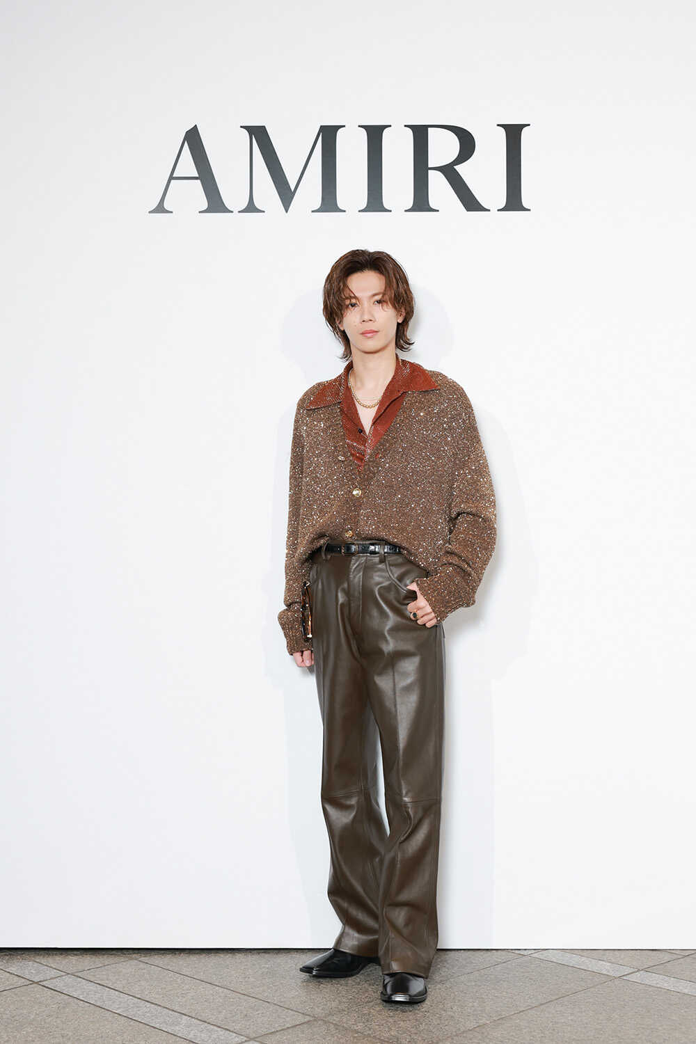 パーティには、〈アミリ〉が形成するコミュニティ『AMIRI UNIVERSE』を象徴するゲストが勢揃い。神宮寺勇太(Number_i)、竜星涼をはじめ、今季よりランウェイに登場したウィメンズラインを纏う谷まりあ、山本美月らが登場。ラグジュアリーとストリートが共存する〈アミリ〉らしいムードを、見事に体現していた。