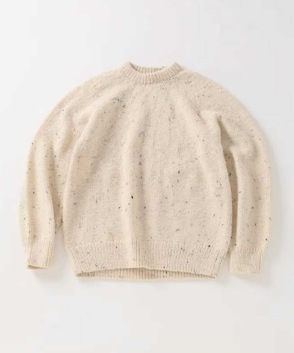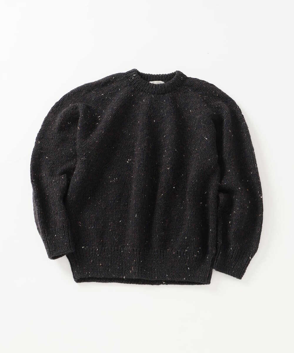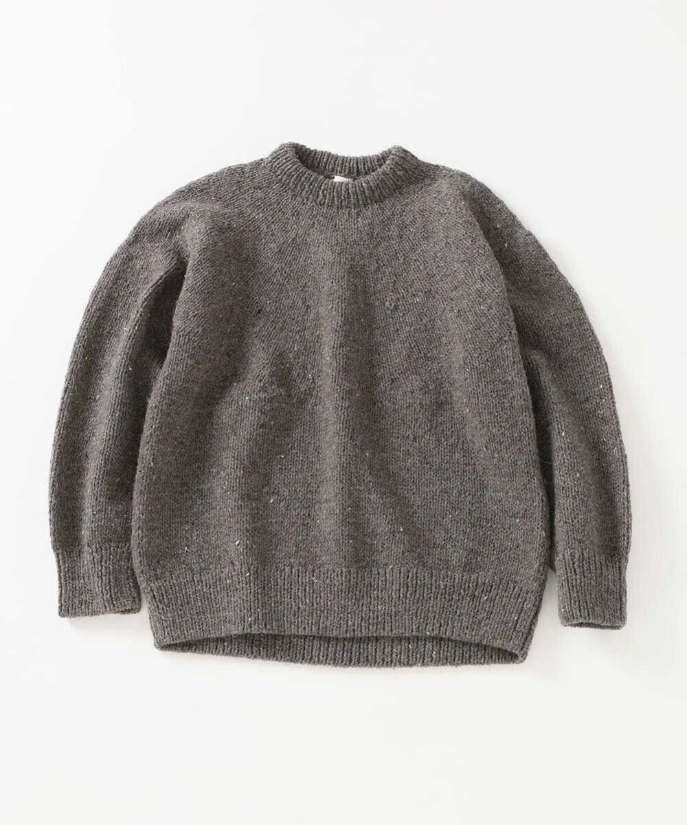 ハンドクラフトによって作られたニットは、手作業ならではのふんわりした生地感による心地よい風合い。ネップによるアクセントのおかげで1枚で着用してもサマになるのが嬉しい。