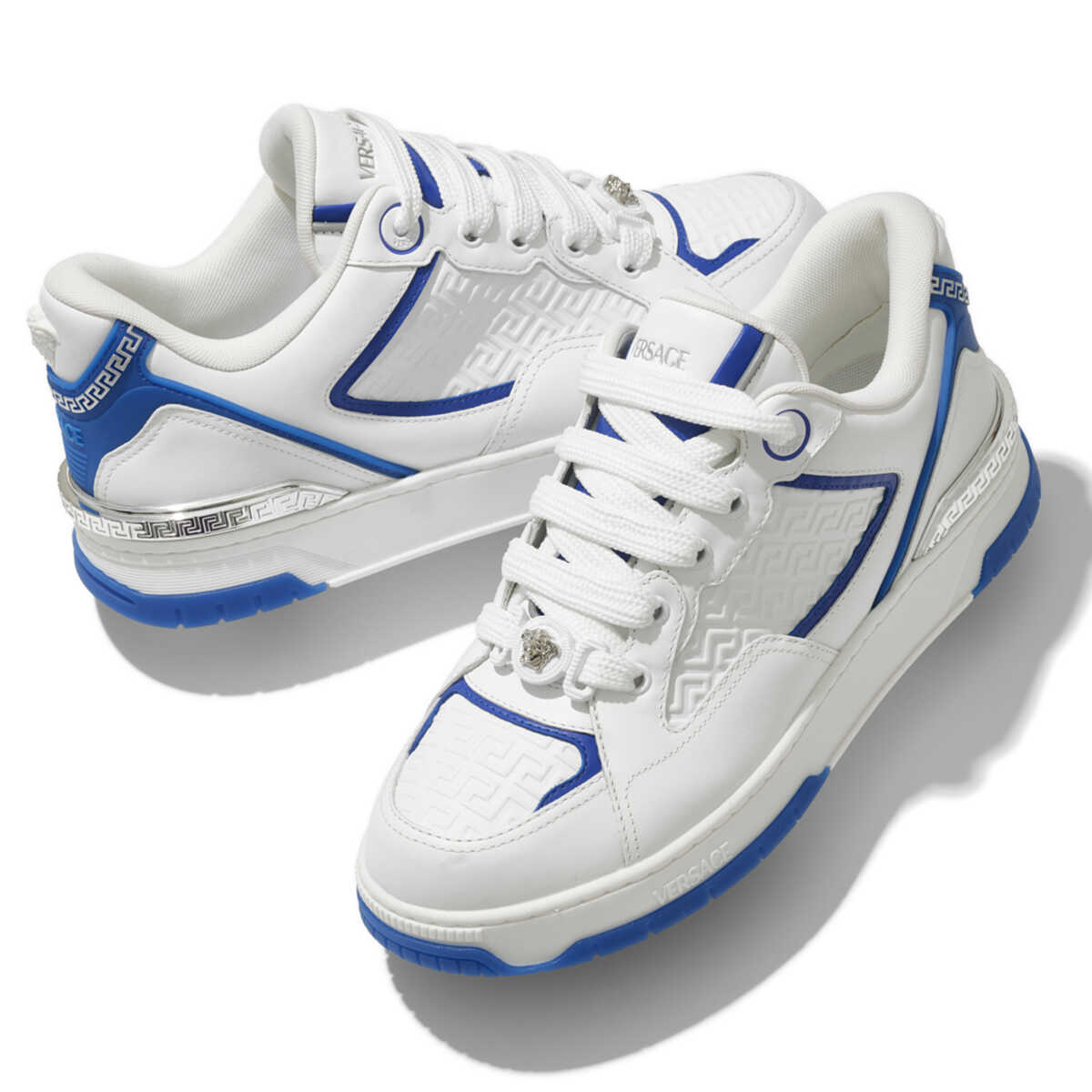 バスケットボールシューズにインスピレーションを得た“ビギー バスケット”。こちらの魅力はなんといっても、ホワイト×ブルーの爽快なカラーリングだ。アッパーにエンボスで描いたグレカモチーフも渋いアクセントとなり、さらにデュブレと呼ばれるチャームやヒールのメタルアクセントなどが加わり、リッチな印象を放つ。