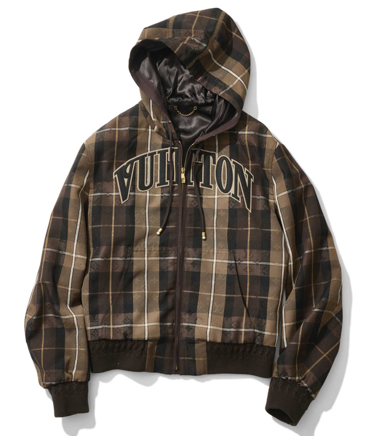 秋らしいブラウン×ベージュのチェック柄に、立体感のあるフェルトでロゴをあしらい、スポーティなムードを演出したフーディ。このチェック柄、よ〜く見るとジャカード織りの“モノグラム・タータンモチーフ”となっており、カジュアルながらさりげなくラグジュアリー感を漂わせているのが大人好み。軽やかなウール素材のジップアップ仕様とあって、季節の変わり目のレイヤードスタイルにもうってつけ。