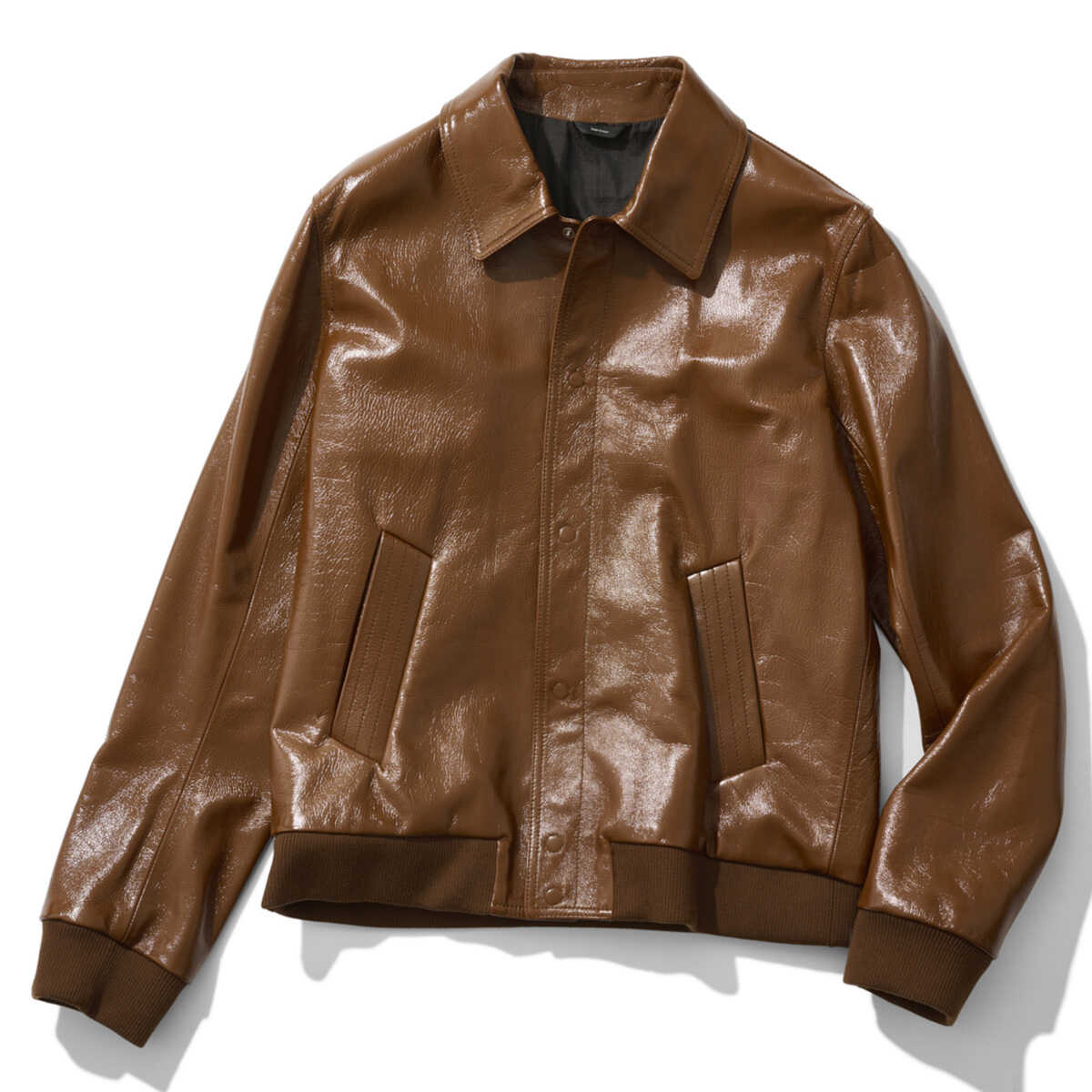 シンプルなレザーブルゾンを、ラッカー仕上げで大人っぽく艶感たっぷりな1着に。シャツカラーやストレッチリブニットの袖口などのディテールが、スポーティなムードをプラス。しっかりと存在感のあるアウターに仕上がっているものの、ショート丈のおかげで重たさは皆無。デニムなどカジュアルと好相性なのはもちろん、このシャイニーな素材感のおかげで、ちょっとしたドレスアップコーデにも馴染む。