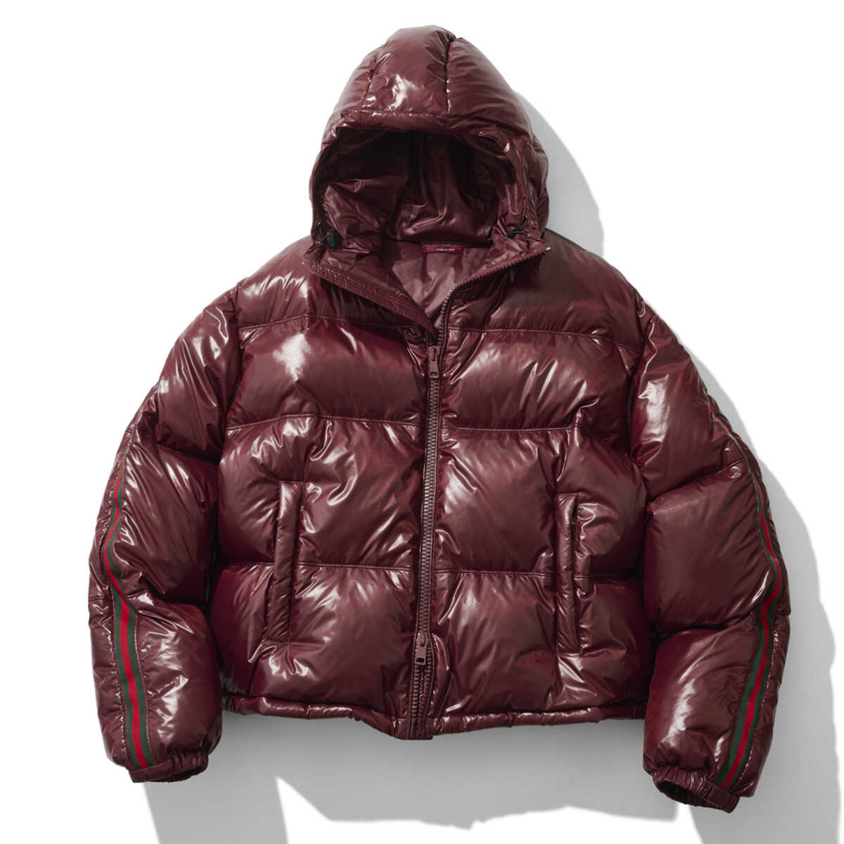 大人っぽさが光るバーガンディカラーのダウンジャケットを、短丈に仕上げることで重たさを感じさせず着こなせる1着に。艶感たっぷりなナイロン素材の質感が、カジュアルなアウターにリッチな存在感をアピール。袖のサイドにはアイコニックな“ウェブ ストライプ”があしらわれ、ラグジュアリースポーティな表情を添えているのも見逃せない。