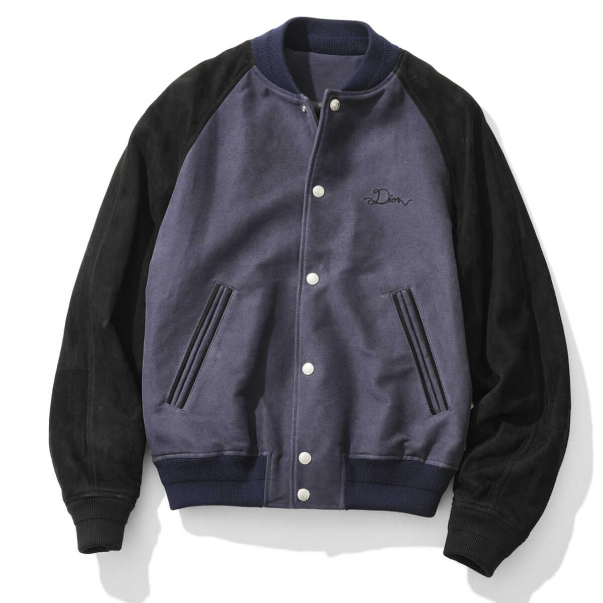 コットンの身頃にラムスキンスウェードの袖を組み合わせ、格上感を漂わせたテディジャケット。落ち着いた色使いがシックな印象ながら、バックにはリボンのグラフィックでロゴ刺繍が施され、さりげない遊び心をプラス。大人のカジュアルコーデにはもちろん、スラックスと合わせて、ドレス感のある着こなしを楽しむというのもおすすめ。