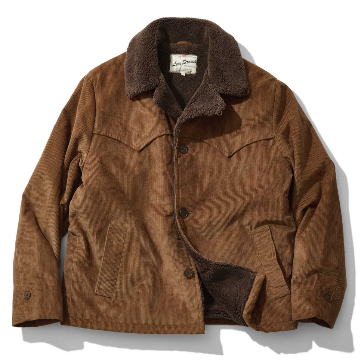 リラックス感のあるサイジングとやや短めの丈、さらにはウエスタン調のデザインと、デニムに合わせやすい1着。ボア襟にボリュームがあるため、特にワイドデニムや味のあるヴィンテージデニムなど、存在感のあるデニムとは相性抜群。柔らかなコーデュロイ素材も、ふんわりとした襟や裏地のボアもブラウンでまとめ、落ち着いたムードとウォーム感を演出している。