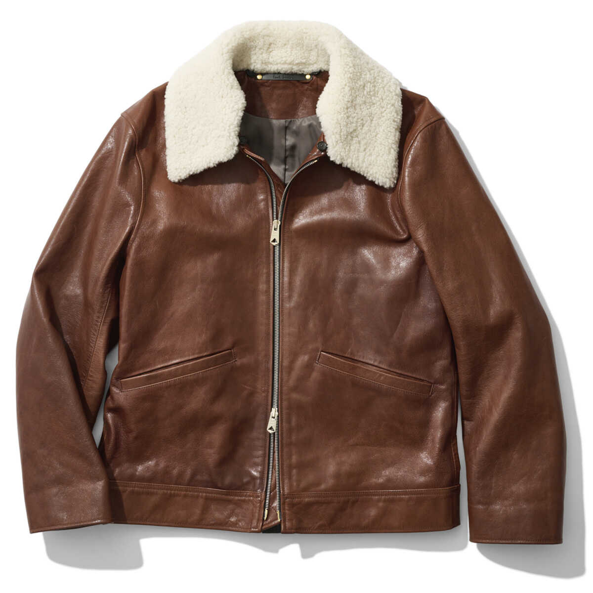 艶やかな山羊革を贅沢に使ったブルゾンに、白のボア襟でクリーンな表情をプラス。襟のボアは取り外し可能で、季節やスタイリングなどに合わせてアレンジできるのが嬉しい。ライニングにはお台場仕立てが施され、テイラードのような丁寧な作りと洗練された雰囲気が、カジュアルなアウターにラグジュアリー感を添えている。