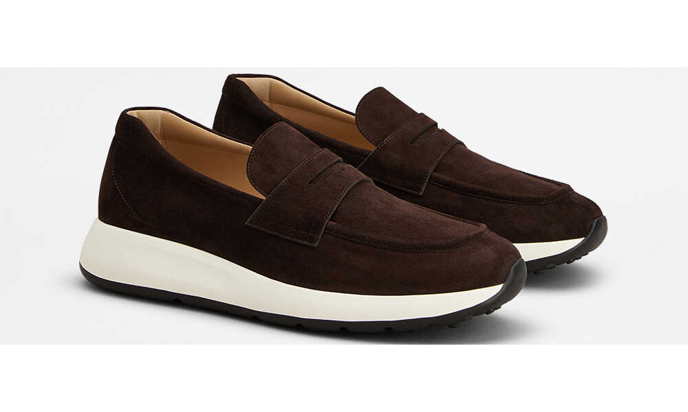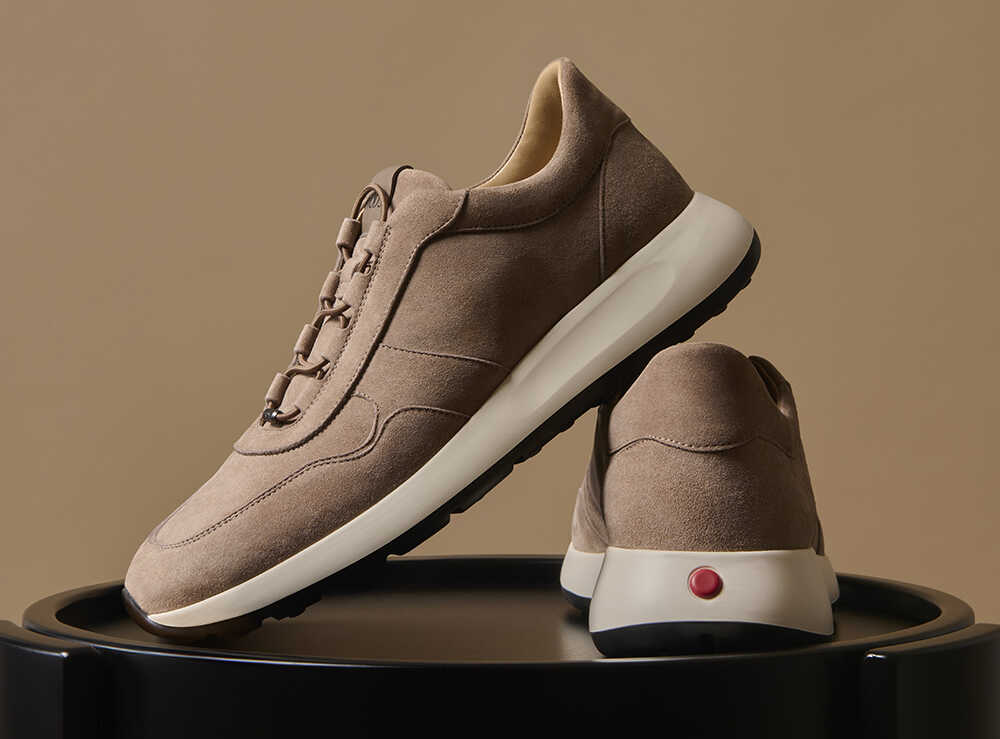 さらに注目したいのが、アッパー素材に使用しているスウェードの“パシュミー”。パシュミナの繊細さにインスパイアされたレザーで、驚くほど柔らかく、まるでシルクのような質感。足を包み込む感覚は軽やかで、いつまでも履いていたいと思わせるほどの快適さが味わえる。