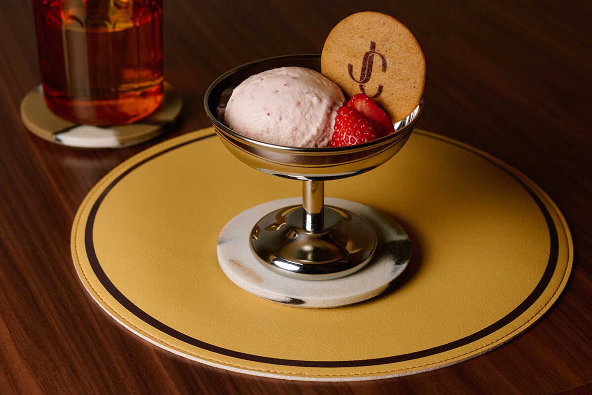 〈ジミー チュウ〉が体現する遊び心あふれる英国ムードと、ローカルな食文化をスタイリッシュな空間で楽しめる"JIMMY CHOO Café"が、阪急メンズ大阪 3Fの〈ジミー チュウ〉ブティック横にオープン。バーカウンター席とテーブル席を備えた店内では伝統的な英国料理をアレンジした特別なメニューが味わえる。また大阪限定のタルタルソース&グリーンピースペーストを添えたフィッシュ&チップスなど、ここでしか楽しめないメニューも多数。英国のジントニックからインスピレーションを受けたモクテルなど、大人だからこそ美味しさがわかるドリンクメニューも。