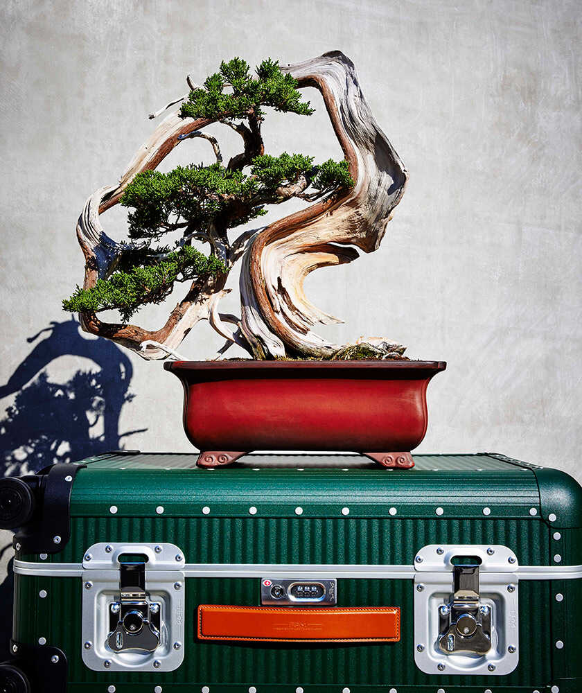 ここ最近、注目を集めているブランド〈トラッドマンズ ボンサイ〉。日本の伝統文化である盆栽を世界に伝えるというミッションのもと誕生し、今回は〈エフピーエム ミラノ〉とタッグを組むことに。一見結びつかなそうだが、実は「長く使い、育て、受け継ぐ」という思想に共通点が。ミラノ発のクラシックとモダンが融合したラゲッジと静謐な自然美を宿す盆栽を重ね合わせることで、両ブランドが持つクラフツマンシップ、美意識、そして文化的背景を新たな形で表現している。