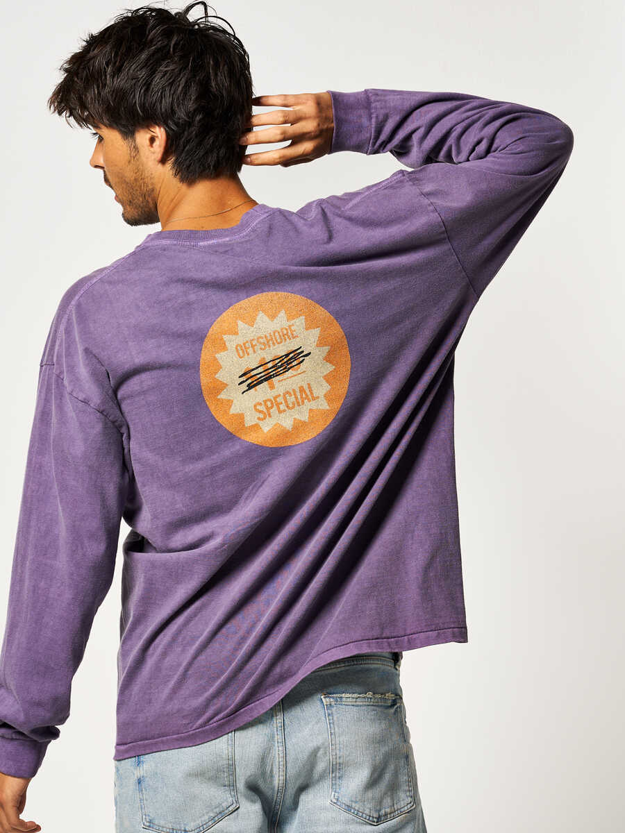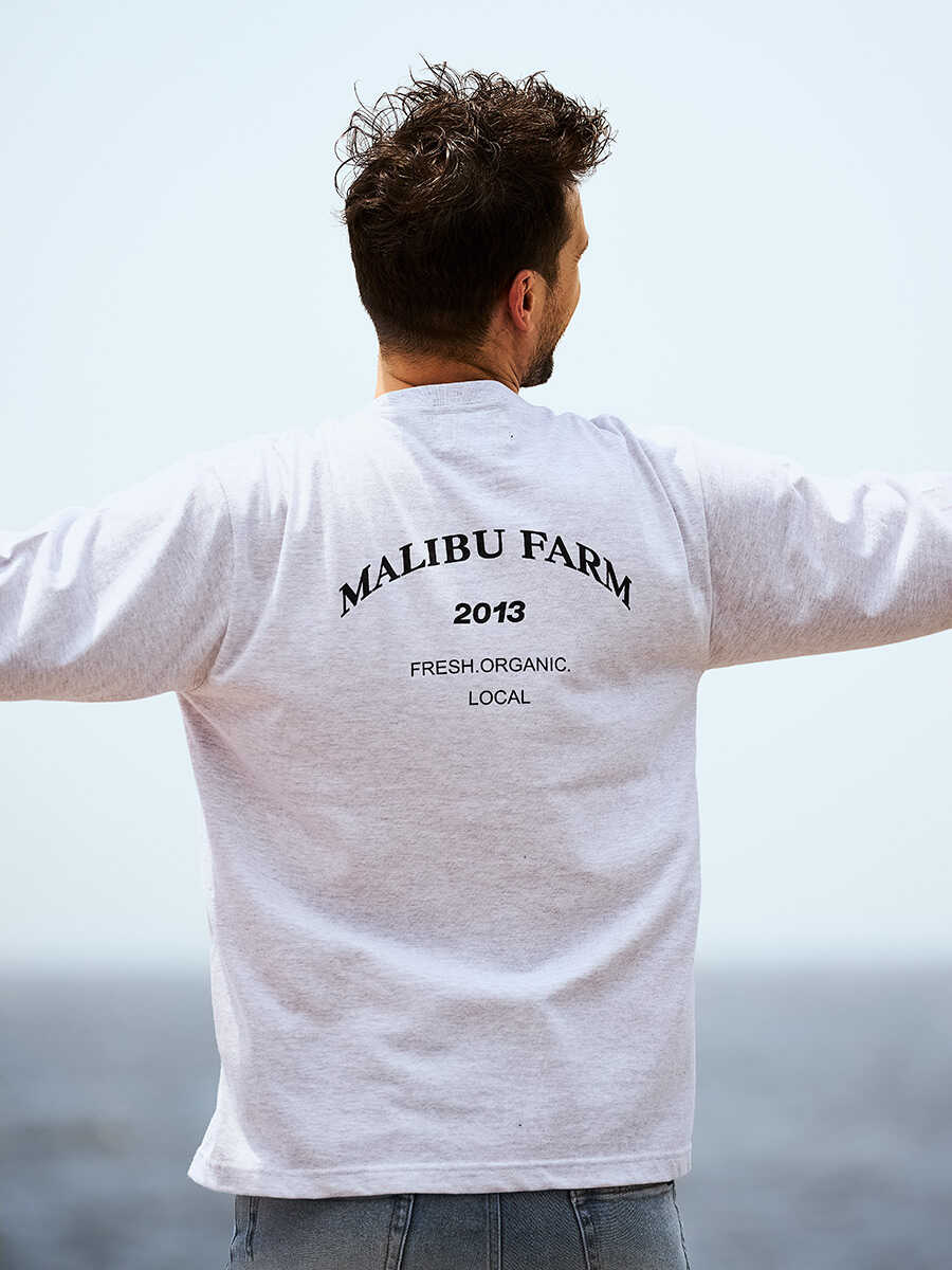 サーフボードの形状から着想した配色ロゴは、アートのような美しさ。オーガニックコットンの滑らかな肌触りも相まって、一度袖を通せばその上質さに驚くはず。袖リブのない仕様が、美しい落ち感を生み、都会的なリラックスムードを醸し出す。
