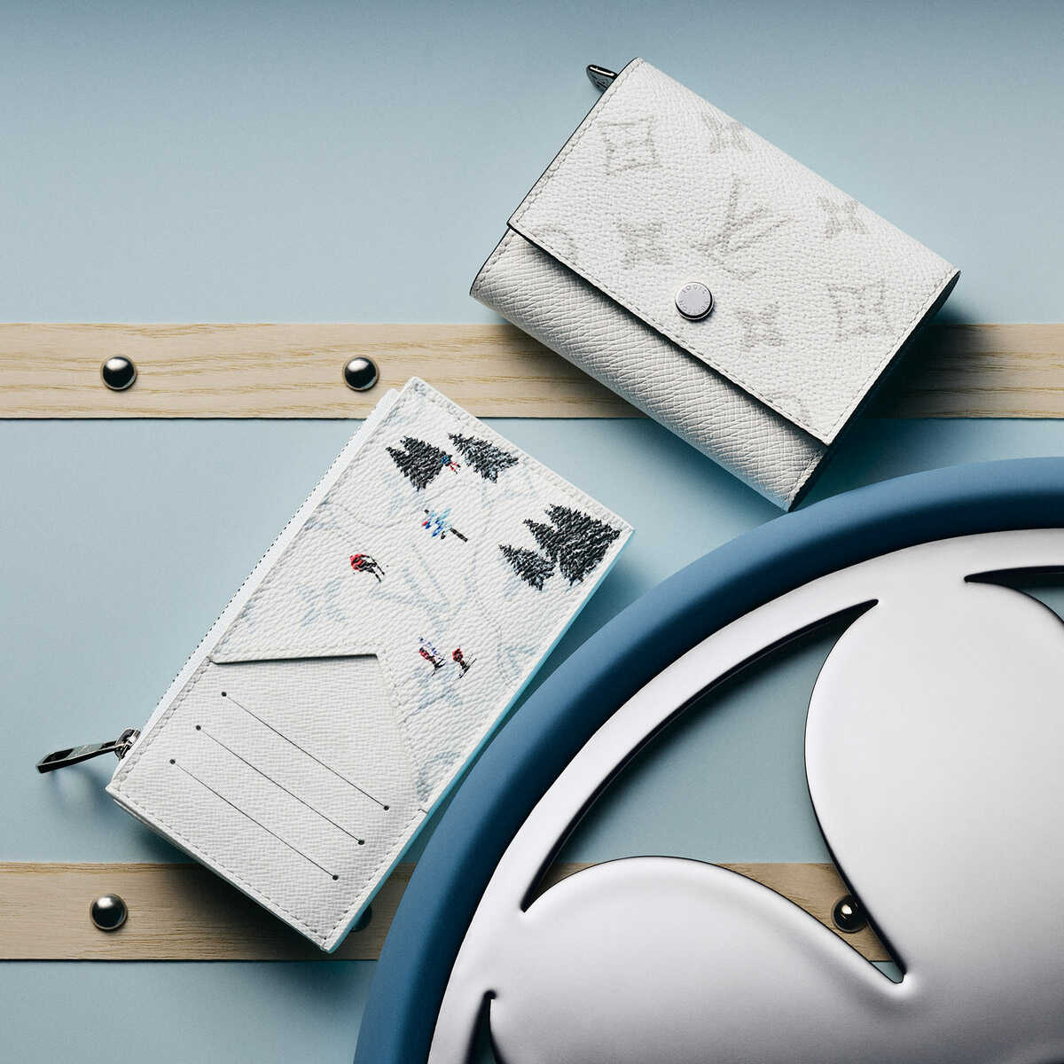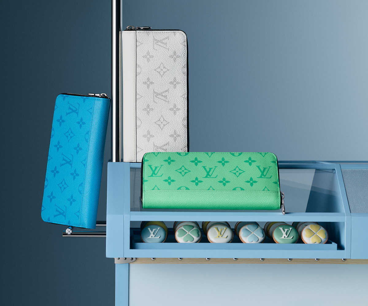 下のカラフルなモノグラム・キャンバスを使用した“コインカード・ホルダー”は、上空から捉えたスポーツシーンをデザインしたアイテム。クレジットカードや交通系ICカード、名刺が収まる4つのスロットに加え、コインや小物用のファスナー式コンパートメントを備えた機能性からも目が離せない。