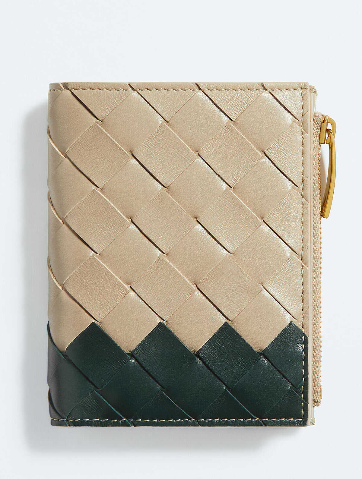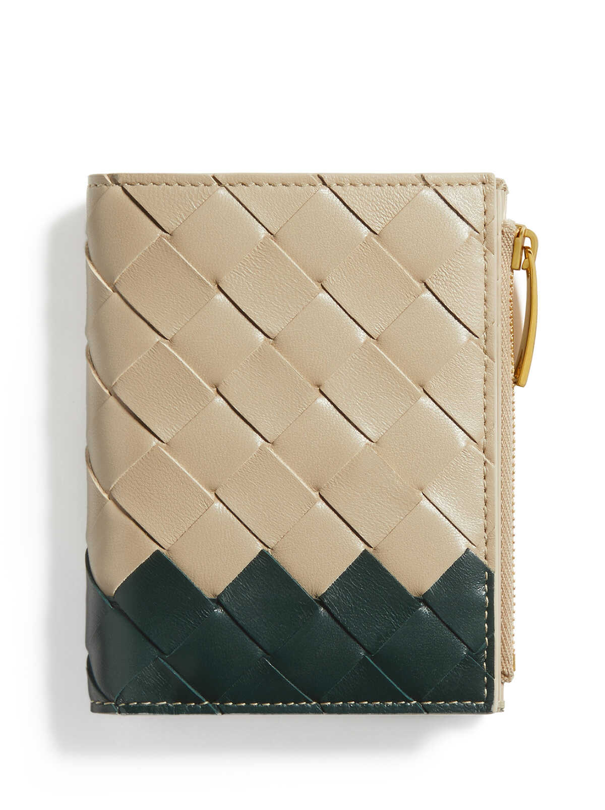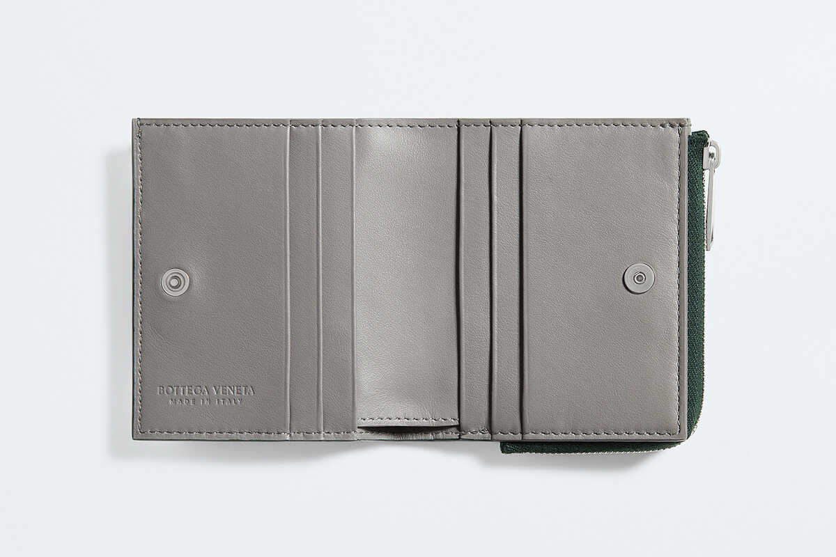 イントレチャートで、しかもバイカラーとなった特別なモデルを特別な日に買うのって、幸運が舞い込んできそうじゃない? このカラーリングは日本限定色。自分で使うのもありだが、海外の友人などへのギフトにするのもいいかも。カードスロットが6つ、札入れスペースもあって、ファスナー付きコインケースも付いている。財布として十分な機能を果たしてくれるデザイン。表側はラムスキン、ライニングはカーフスキンとなっている。イタリア