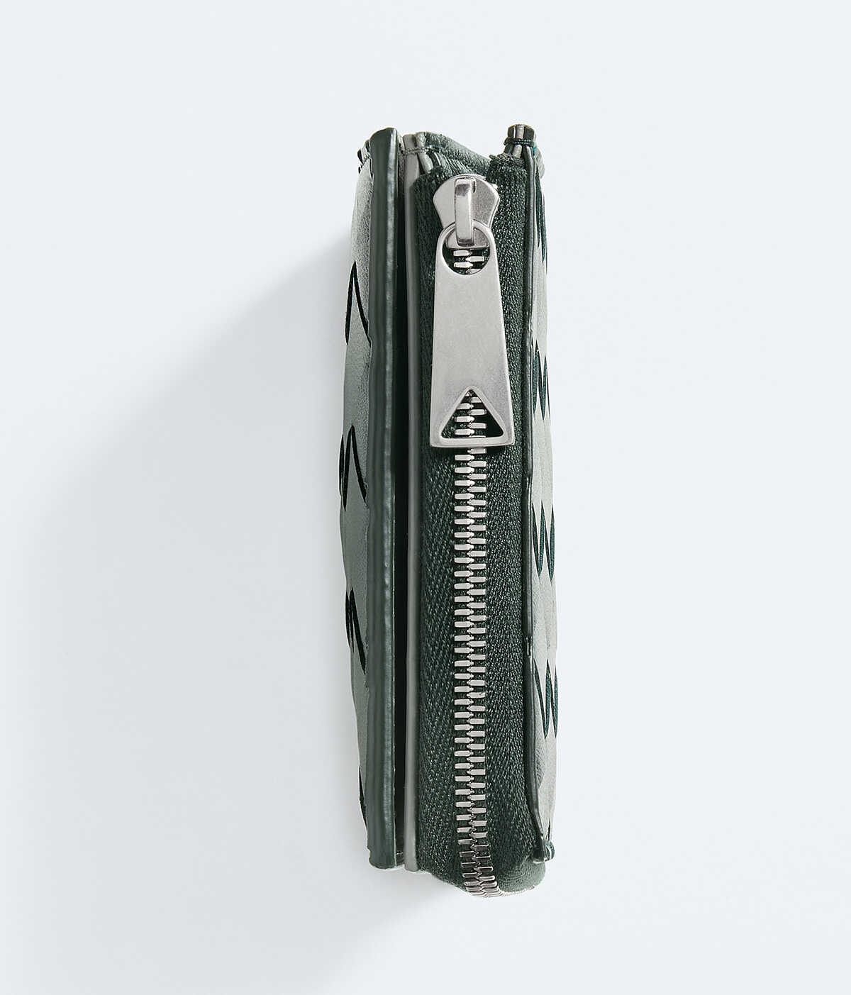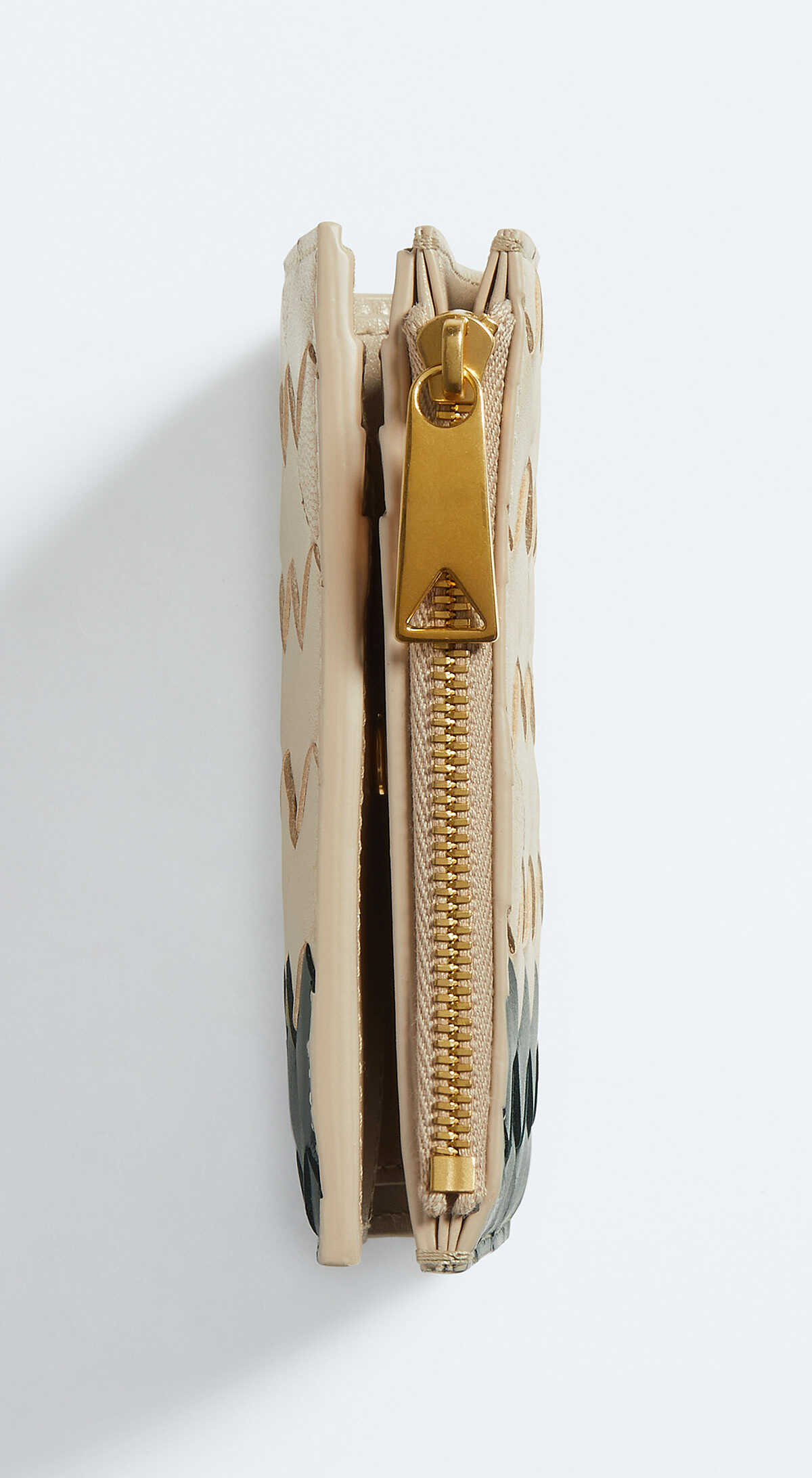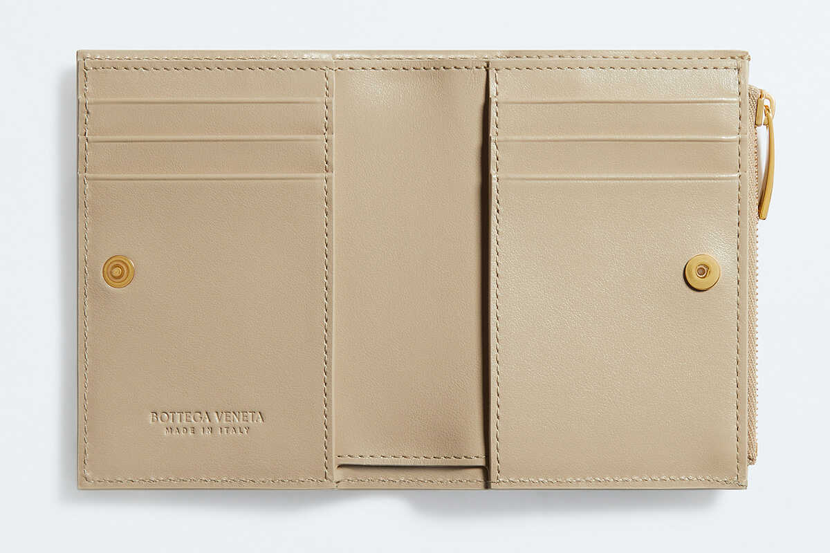 イントレチャートで、しかもバイカラーとなった特別なモデルを特別な日に買うのって、幸運が舞い込んできそうじゃない? このカラーリングは日本限定色。自分で使うのもありだが、海外の友人などへのギフトにするのもいいかも。カードスロットが6つ、札入れスペースもあって、ファスナー付きコインケースも付いている。財布として十分な機能を果たしてくれるデザイン。表側はラムスキン、ライニングはカーフスキンとなっている。イタリア
