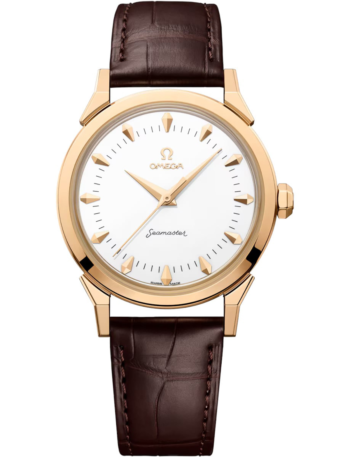 ケース径37mm、自動巻き、ムーンシャインゴールドケース、アリゲーターストラップ、100m防水。306万9000円(オメガ)