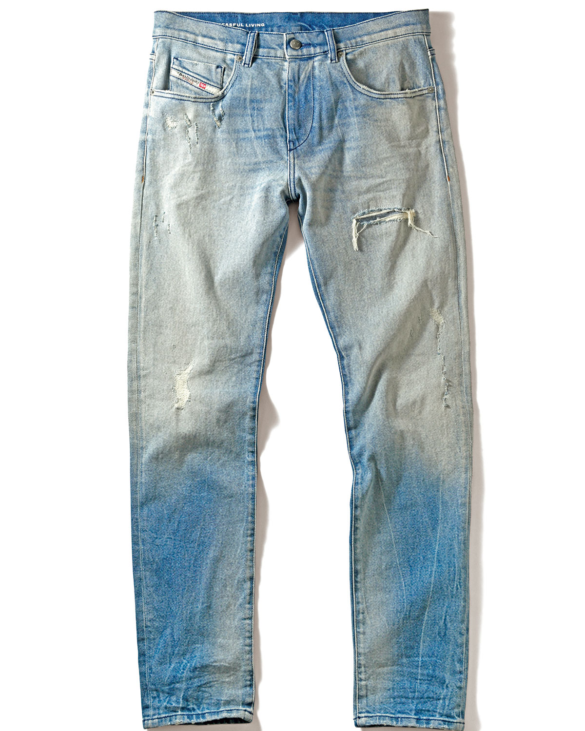 脚のラインを拾いすぎないスリムフィットが大人に人気の〝D-ストラクト〞。コントラスト強めの色落ちが特徴的で、生地はもちろん、動きに追従して伸びるストレッチ仕様。5万1700円(ディーゼル/ディーゼル ジャパン)