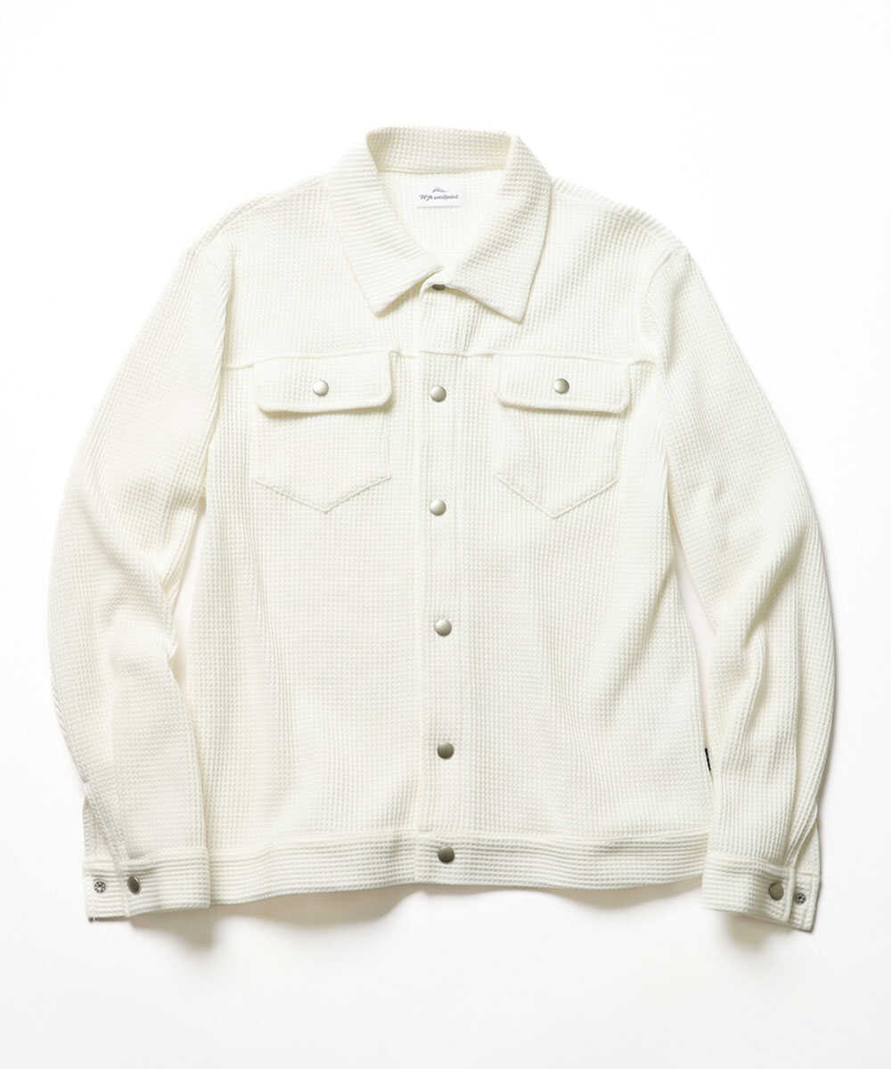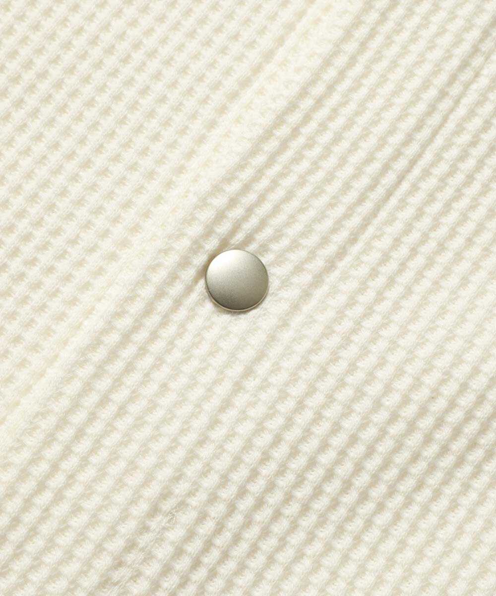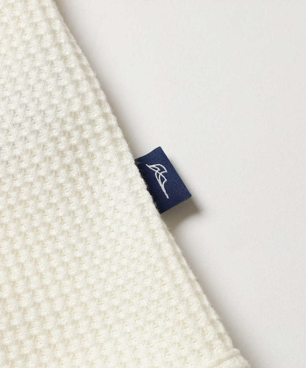 〈ダブルピー ウエストポイント〉が提案するのは、なんとふっくらとした肉厚なサーマル生地で仕立てたGジャン。デニムの硬さとは無縁の、包み込まれるような柔らかさがこのアイテム最大の魅力だ。サーマル特有の凹凸感が豊かな表情を生み、1着で存在感は抜群。保温性と通気性のバランスに優れているため、朝晩が冷え込む春の海沿いでも重宝する。リラックス感あふれる素材をGジャンの形に落とし込むことで、大人にふさわしい“抜け感”を演出してくれる。