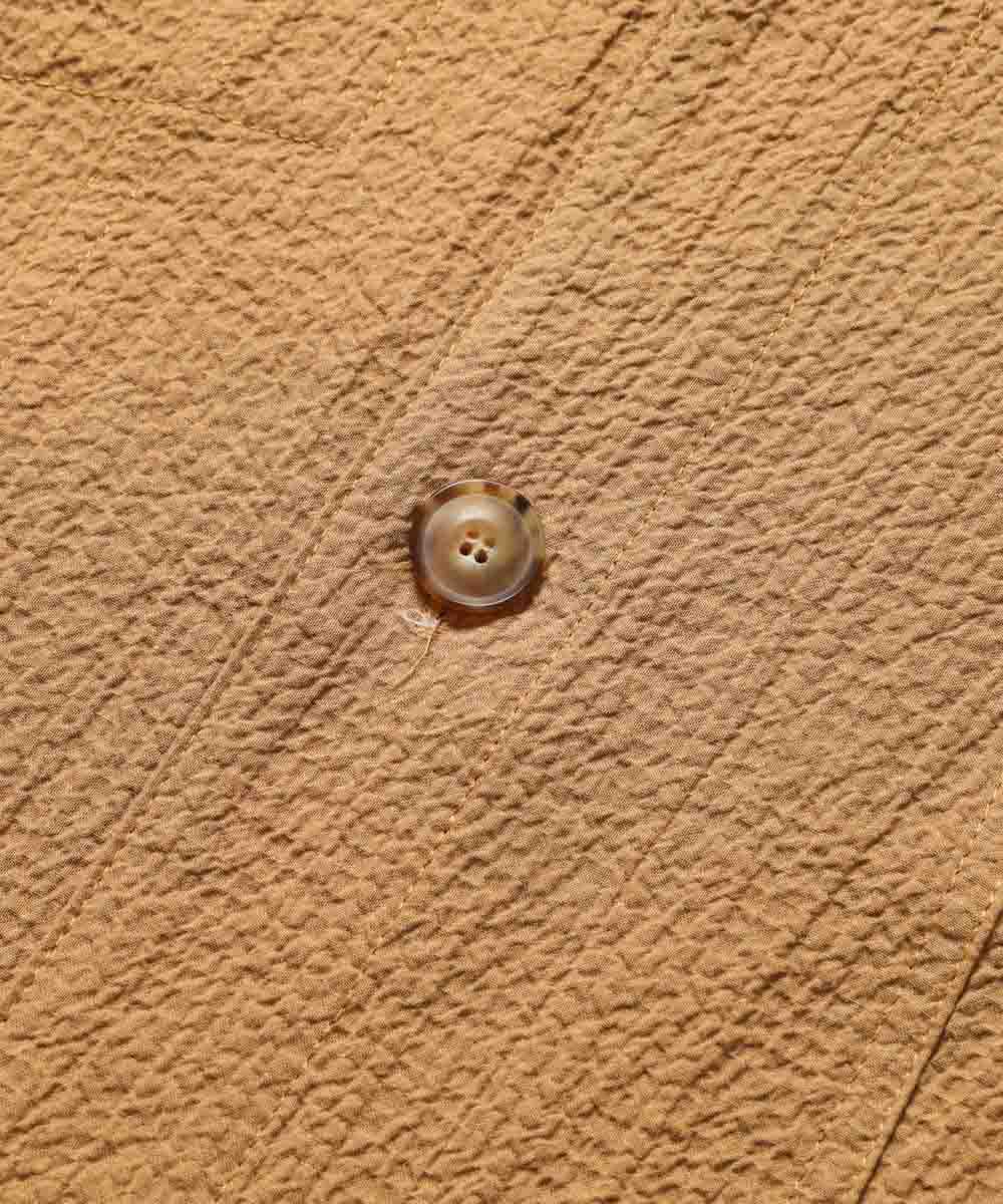 ステッチの入り方や襟の形など、随所にイタリアブランドらしい気品が漂い、ワーク由来の形でありながらもどこかドレッシー。袖口や裾の仕上げも丁寧で、腕まくりをした際もサマになる。軽量な素材なので、肩に掛けたりカバンに忍ばせたりと、持ち運びが楽なのも大人の旅には嬉しいポイント。