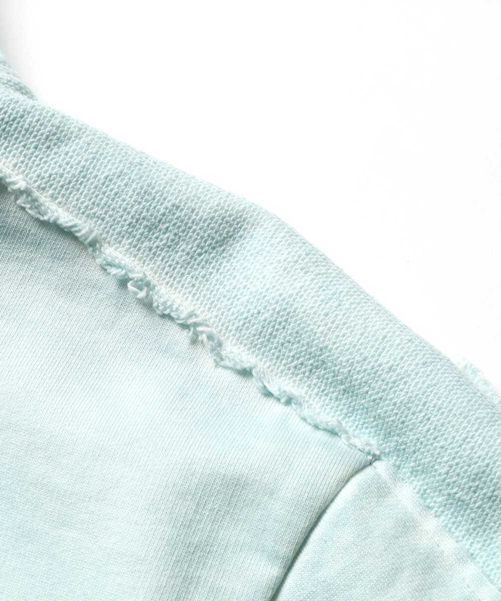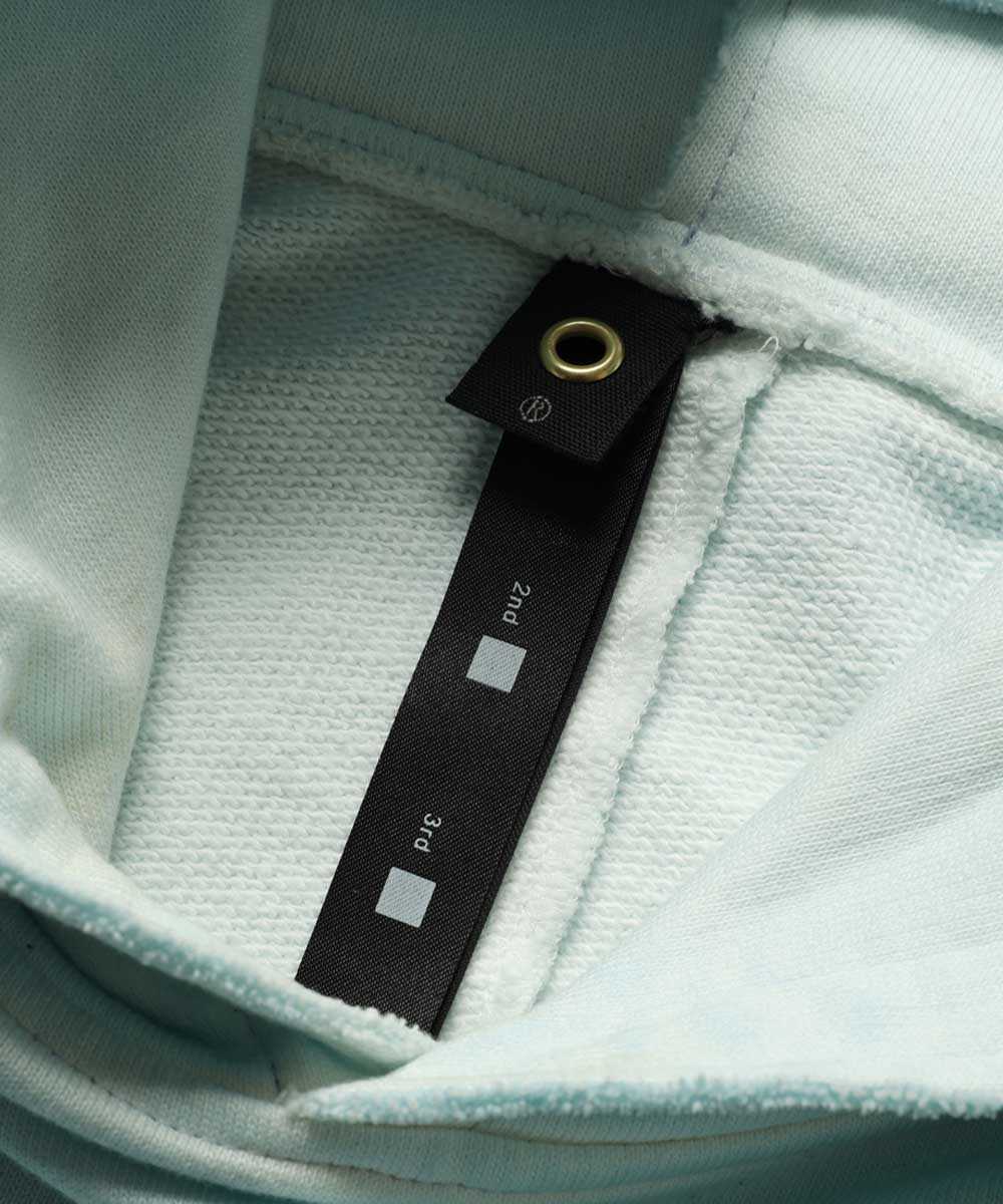 セットアップの顔となるのが、この端正な顔立ちのプルオーバーパーカ。最大の魅力は、特殊なシルケット加工を施した目の詰まったヘビー裏毛素材と、"コールドダイ"という特殊染色による絶妙なムラ感だ。人気のブルーとグレーのフェードカラーが、新品ながら長年愛用したようなこなれたヴィンテージテイストを演出。さらに、ネックの合わせに深さを持たせることで、フードがヘタらず自然に立ち上がり、顔まわりをスッキリと見せてくれるのも大人には嬉しいポイント。単体でもセットアップでも着まわしやすい、まさに主役級の1着だ。