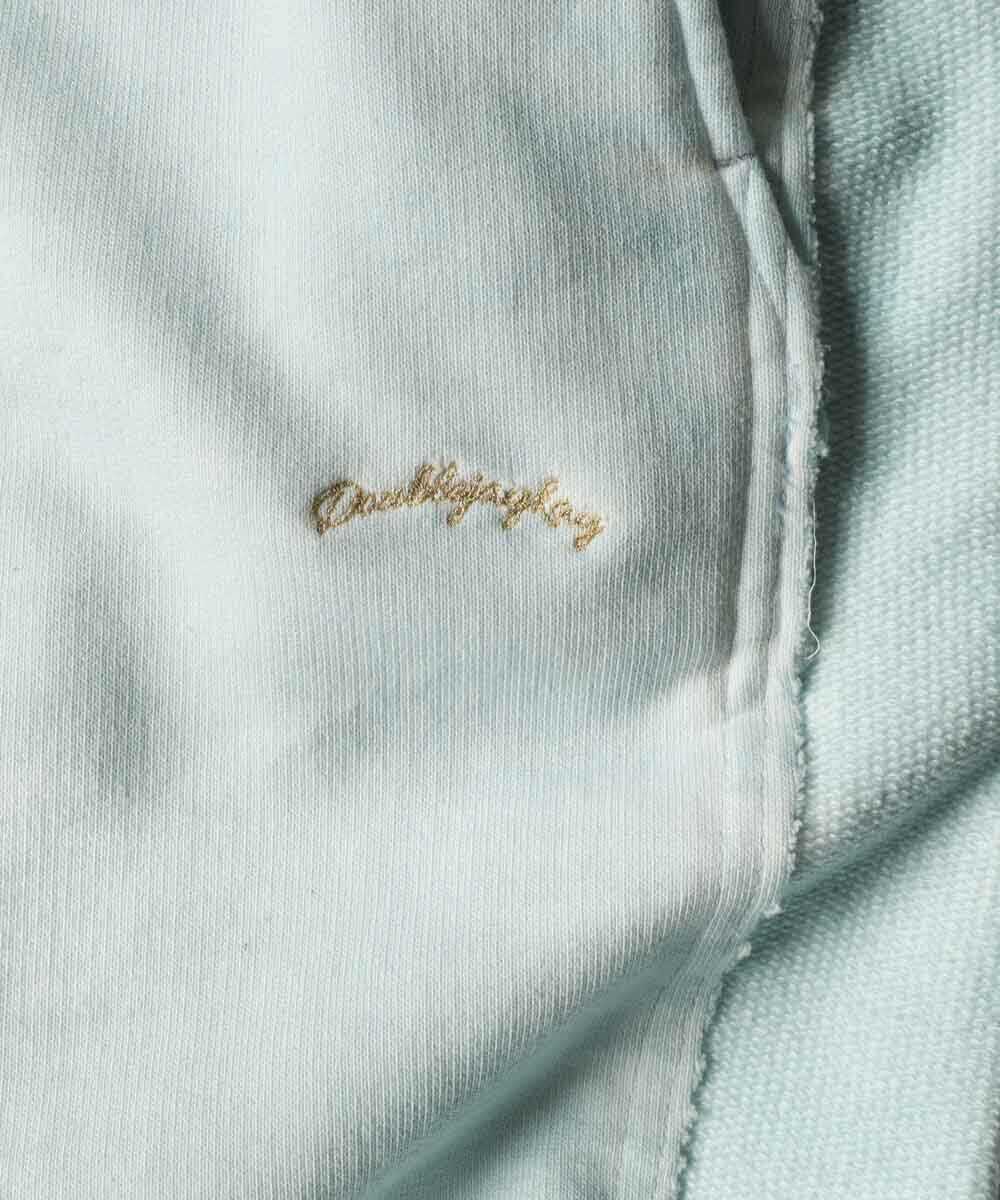 左ポケットにはパーカとリンクするアーチロゴの金刺繍をオン。それに合わせるようにドローコードは留め具までゴールドで統一し、スポーティなスウェットに、ラグジュアリーな艶っぽさを。また、スウェットパンツでは珍しいフロントジップなのも大きな特徴。裾の裁ち切り風の仕上げや、別注限定の証である金ハトメタグが、全体の特別感をグッと高めている。