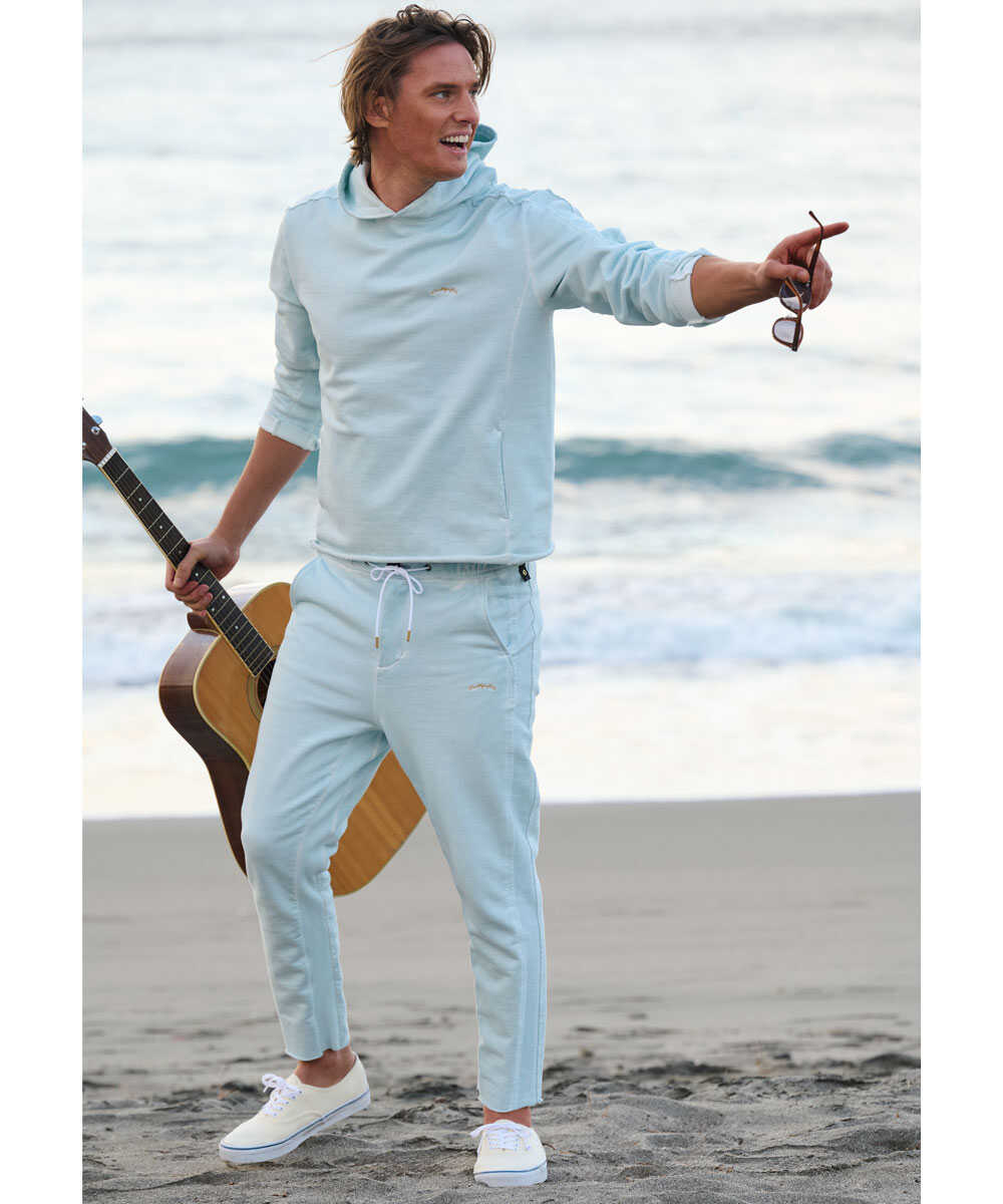 カラーによってガラリと異なる表情を楽しめるのも、このセットアップの醍醐味。春の陽射しや海辺の景色に映える爽快な"フェードブルー"なら、インナーにクリーンな白Tシャツを合わせてトップスの裾からチラリと覗かせるのが正解。ブルー×ホワイトの爽やかなコントラストが西海岸テイストの抜け感を生み、海上がりや週末のカフェ巡りといったリラックスシーンにうってつけだ。一方、都会的でこなれた印象を与える"グレー"は、インナーに黒などのダークトーンを差し込んでシックにまとめるのもあり。スウェット特有のラフさを抑えたモダンなスタイルに仕上がり、コールドダイのムラ感や美シルエットがより際立つため、休日のショッピングでもラフさはそのままに大人らしく仕上がる。どちらのカラーを選んでも、大人の余裕漂う上質なスポーツミックスを存分に楽しめるはずだ。