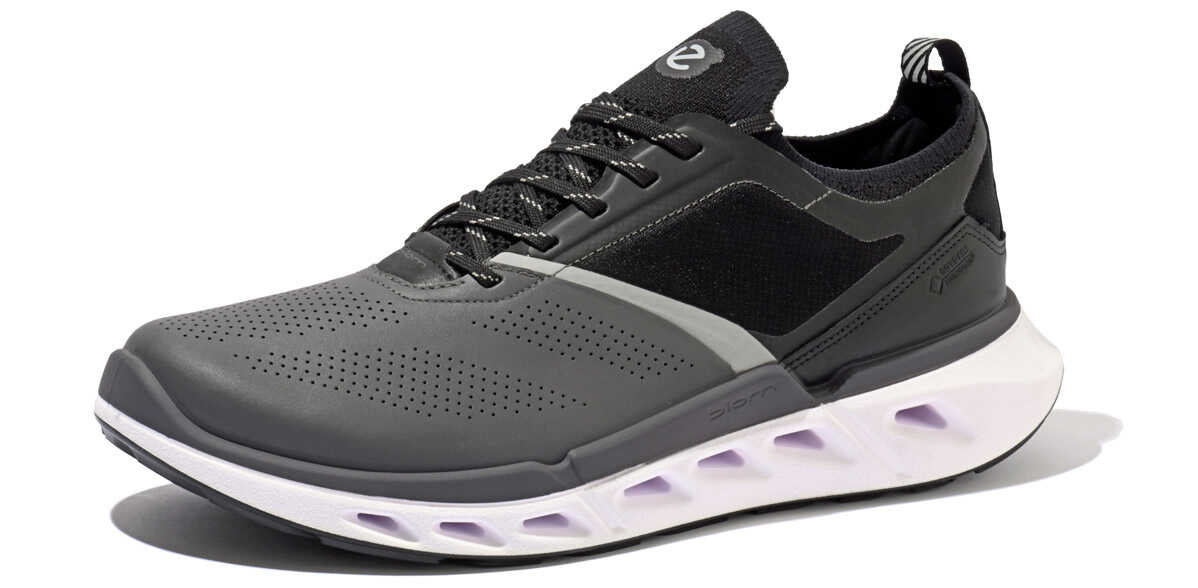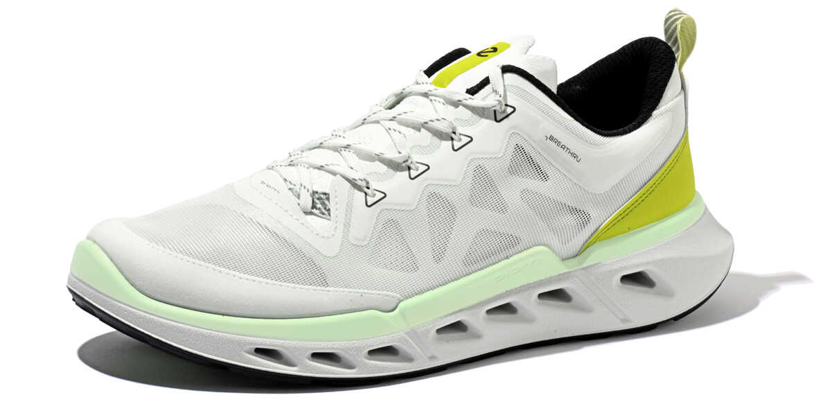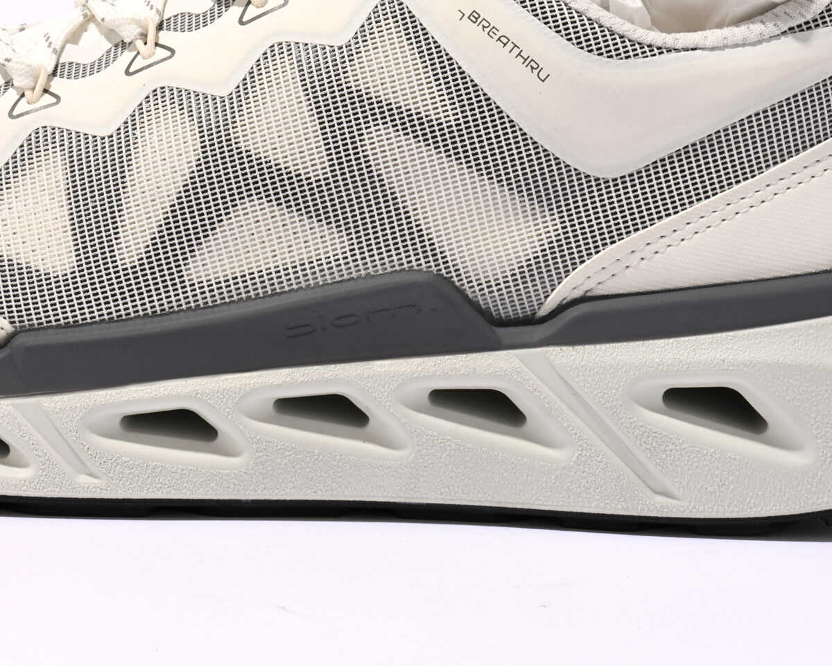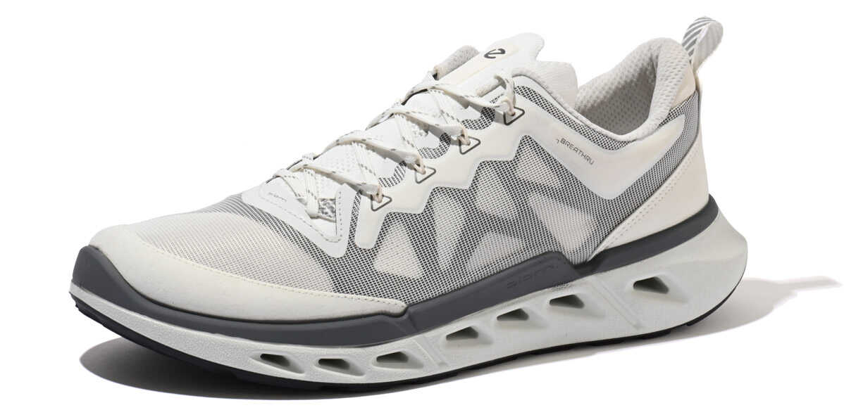 独自開発した“プレミアムエコーレザー”に、ナイロン製エンジニアードテキスタイルを組み合わせたタイプ。革が放つ品格とスポーティさの絶妙なバランスが魅力。すっきりとした見た目なので、洗練された雰囲気の着こなしにも似合う。各4万700円(以上エコー/エコー・ジャパン) アッパーにパフォーマンスメッシュを被せ、スニーカー然としたスポーツルックのモデルもラインナップ。シューレースホールもD環リングに変えることで、アウトドア風のテイストも感じさせる、アクティブな足元を作れる。各3万5200円(以上エコー/エコー・ジャパン)DETAILS