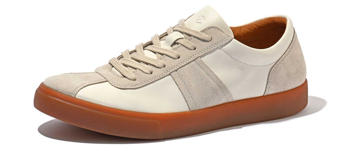 プレーンなデザインは全部で4モデル。スウェードタイプ、スムースレザータイプ、どちらも“プレミアム エコー レザー”を採用しているから、柔軟性、通気性ともに万全。ソール ユニットも人間工学に基づいた設計と、すべてで快適な履き心地を約束する。各3万1900円(以上エコー/エコー・ジャパン) 数年前のトレンドから今では定番となったジャーマントレーナーのスタイルを踏襲したモデルも用意。ベースをスムースレザー、トゥをはじめとした補強にスウェードレザーを用い、アクセントをつけたことで印象的な見た目に。各3万5200円(以上エコー/エコー・ジャパン)DETAILS