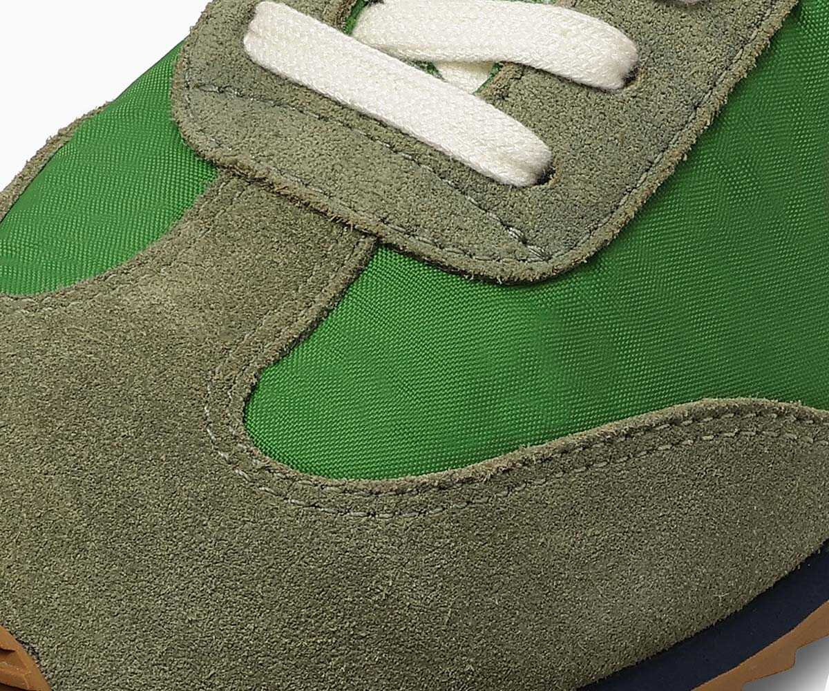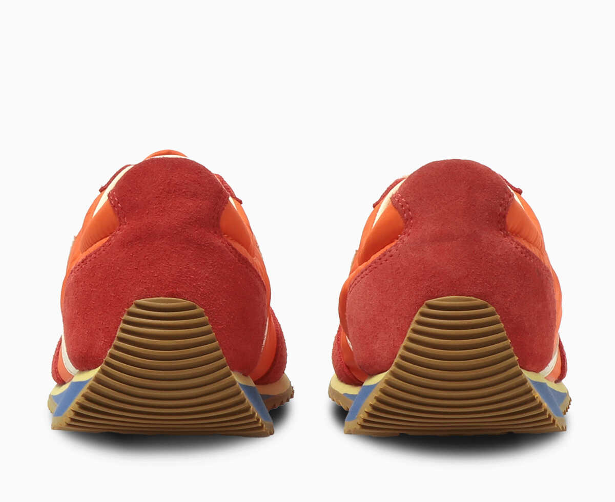 今回発売されるモデルは、1970年代のランニングシューズ特有のクラシックなルックスを踏襲しながら、履き心地をアップデイトした1足となっている。アッパーにはナイロンとスウェードを採用し、特別な洗い加工を施すことで、アッパーのシワやスウェードの色むら、そしてヴィンテージ感漂うタンラベルの風合いなど、まるで昔の伝説モデルが時を超えて現代に現れたかのような、深みのあるディテールが表現されている。また、アーカイブから着想を得たミッドソールの配色を採用し、アッパーとの計算されたコントラストでレトロな雰囲気となっている。ミッドソールには、薄底ながらも2層構造でサポート性を高めたE.V.A.を採用。カラーは、1977年発売当時のオリジナルモデル"スターファイヤー"から着想を得たヘリテージカラー5色を採用。これがまたヴィンテージっぽさをより高めている。