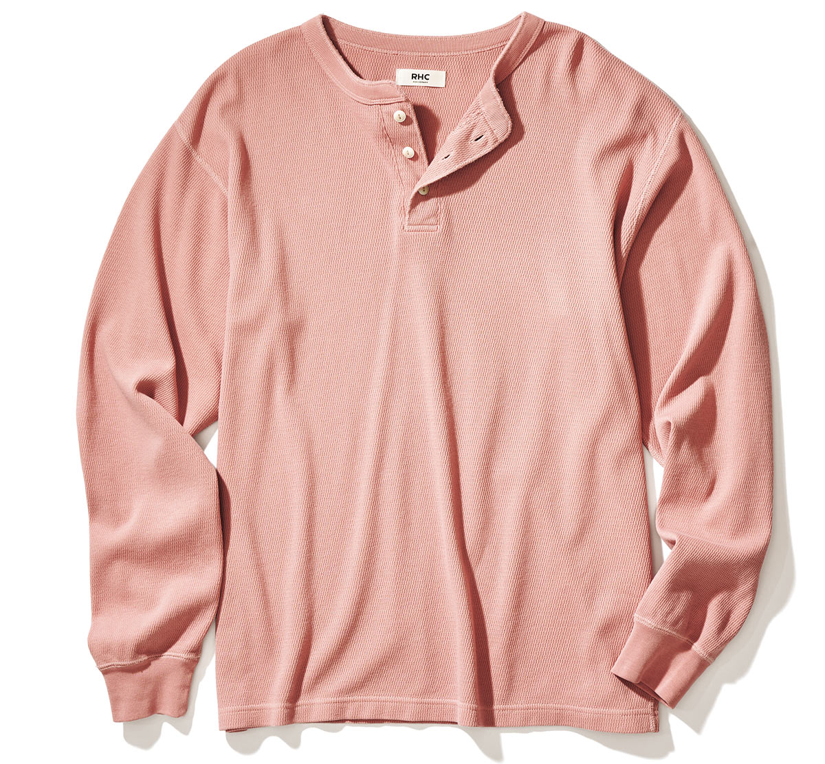 淡いピンクが優しげなロングヘンリーネックシャツ。2万3100円RHC / RHC ロンハーマン)