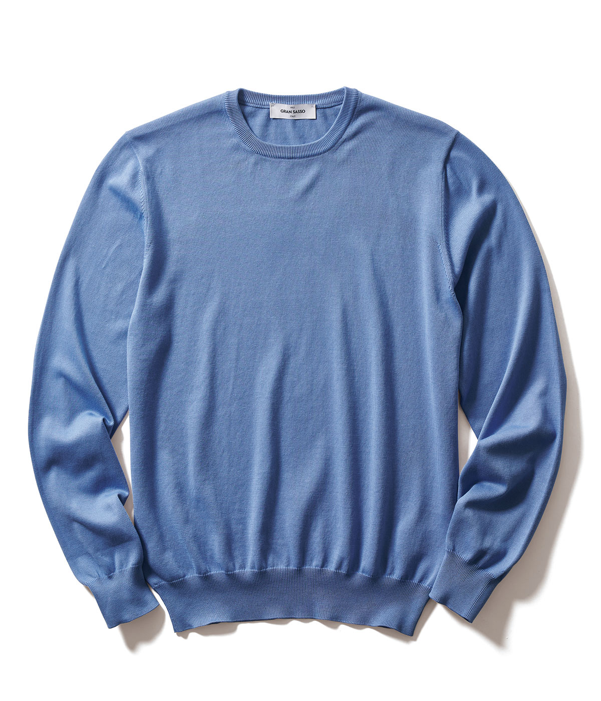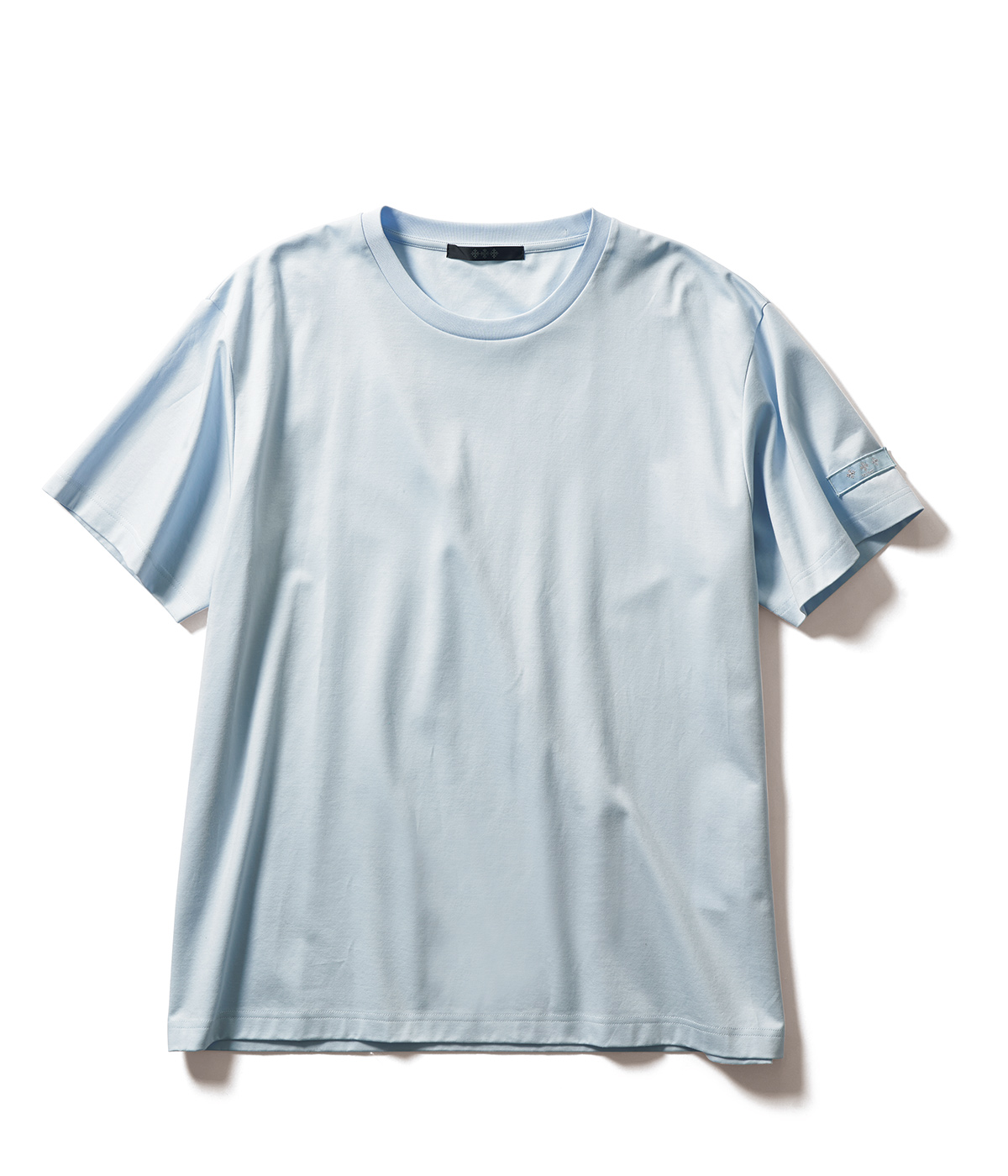 特殊な加工で毛羽立ちを取り、スーピマコットンの柔らかな風合いを引き立てた〝チアーロ〞。左袖で目を引くロゴワッペンも同色のサックスブルーで爽やかに。2万6400円(タトラス/タトラス カスタマーセンター)