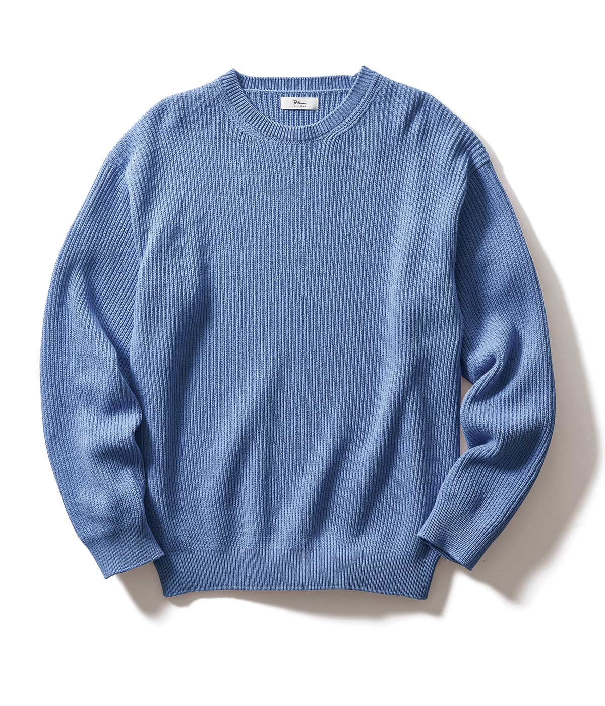 日本国内の紡績工場で発生した落ち綿をリサイクルし、ゆったりとしたレギュラーフィットに編んだプルオーバーニット。強撚糸を使っているのでほどよいコシがあり、サラリとした着心地を楽しめる。3万6300円(ロンハーマン)