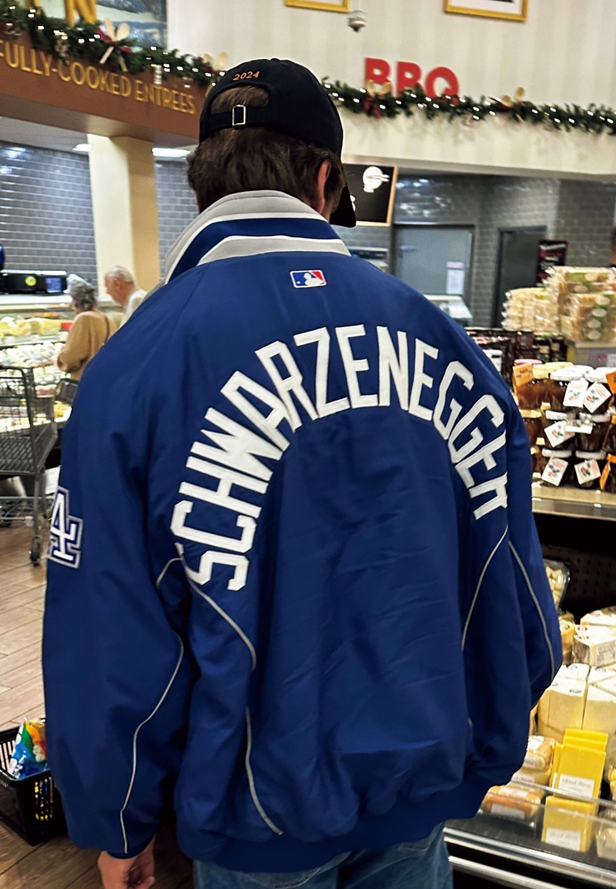 ドジャースのスタジャンにブルーデニムを合わせ、インもドジャーブルー! 生粋のLAっ子だけにまた、それがよくお似合い