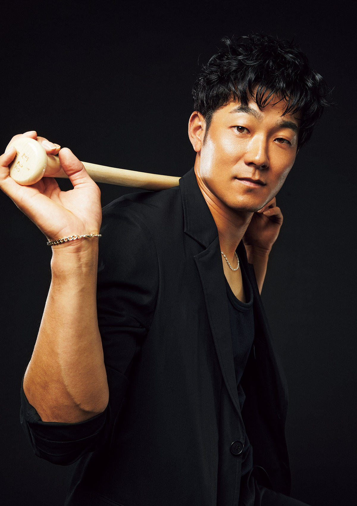 「ジャケットは似合う」という言葉どおり、華麗なジャケ姿を披露してくれた長谷川選手。補強によって厳しさをさらに増した外野手の定位置争いにおいても静かな自信を見せる。「ピンチだけど、いい刺激になるので楽しみ。地に足をつけて一歩ずつ勝ち上がっていきますよ」