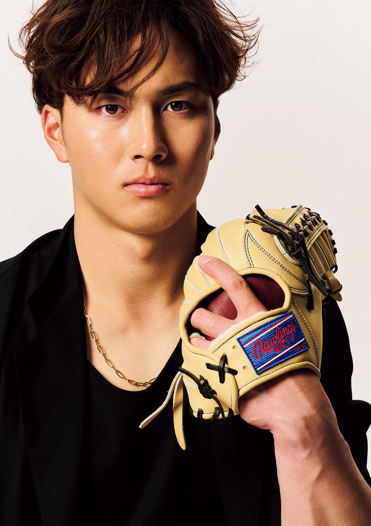 日本人左腕最速を誇る豪快な投球術とは対照的に、洗練されたスタイルで撮影現場のスタッフを沸かせた羽田選手。「球団一のファッショニスタを目指したい」と豪語するほど、その出来を気に入った模様だ。「野球はもちろん、いろんなことに挑戦する僕を楽しんでほしい」