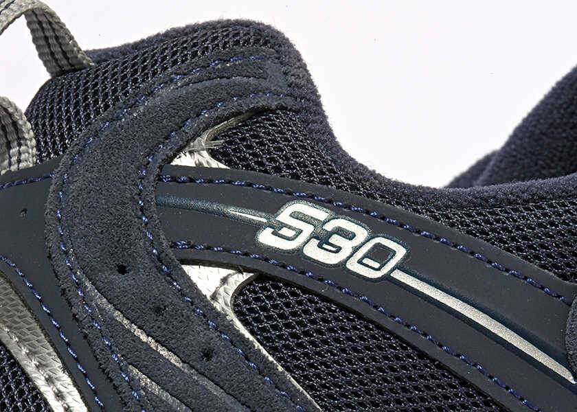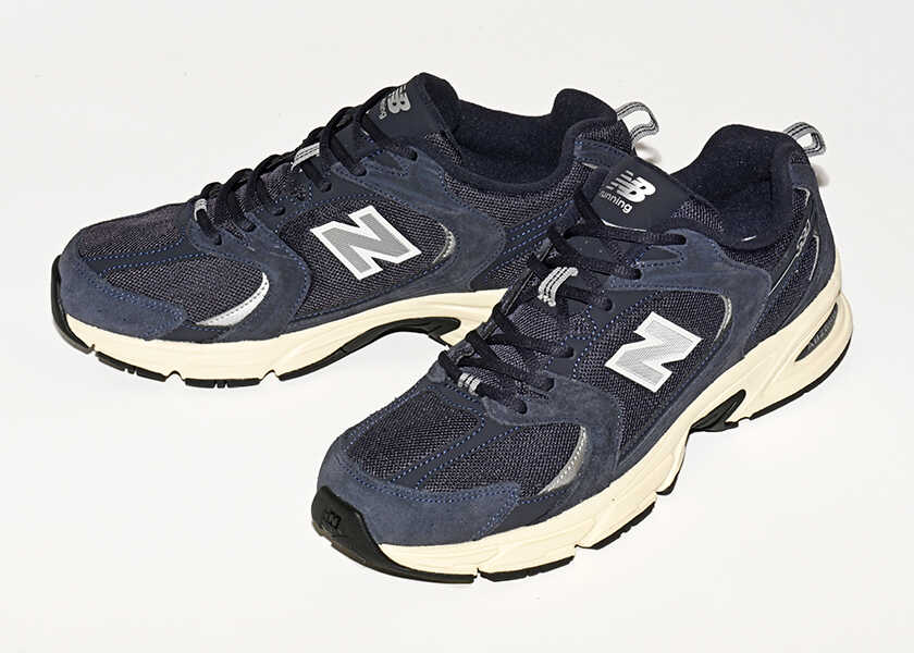 またまた『Safari』別注のスニーカが完成! 第3弾となる今回は、〈ニューバランス〉“530”。2000年代のフィットネスランニングシューズのスタイルを、モダンにアップデート。なんといっても注目なのが、そのカラー。メッシュ素材&スウェードとシンセティックレザーで構成されたアッパーを、『Safari』のアイデンティティカラーであり、〈ニューバランス〉の定番カラーのひとつでもあるシックなネイビーの1足に仕上げている。また、シューレースもネイビーなので、落ち着いた雰囲気を演出。さらにアウトソールは、ややくすみのある黄色味がかったオフホワイトで、クリーンすぎない印象に仕上げているところも魅力。シーンを選ばないので、さまざまなスタイリングに合わせやすい汎用性の高い1足と言える。もちろん細かいところまで、こだわっているので紹介していきた。