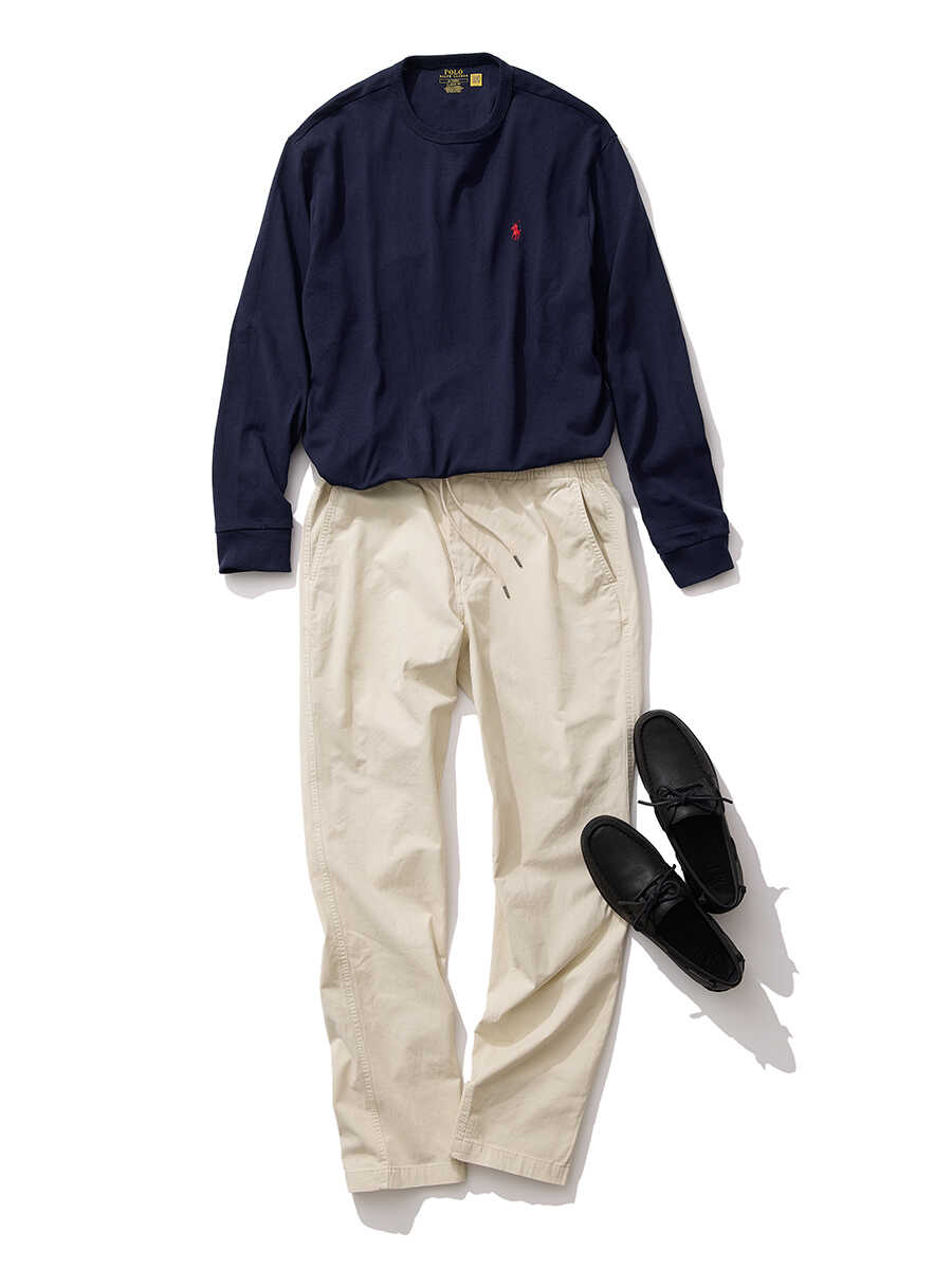 ロンT 1万7600円、パンツ 2万7500円、シューズ 2万7500円(以上、ポロ ラルフ ローレン/Safari Lounge)