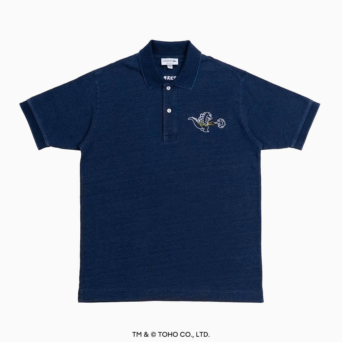 5/29(金)より発売予定。ネイビー(インディゴブルー)のゴジラ+ラコステ ポロシャツ2万4200円(ラコステ/ラコステお客様センター)