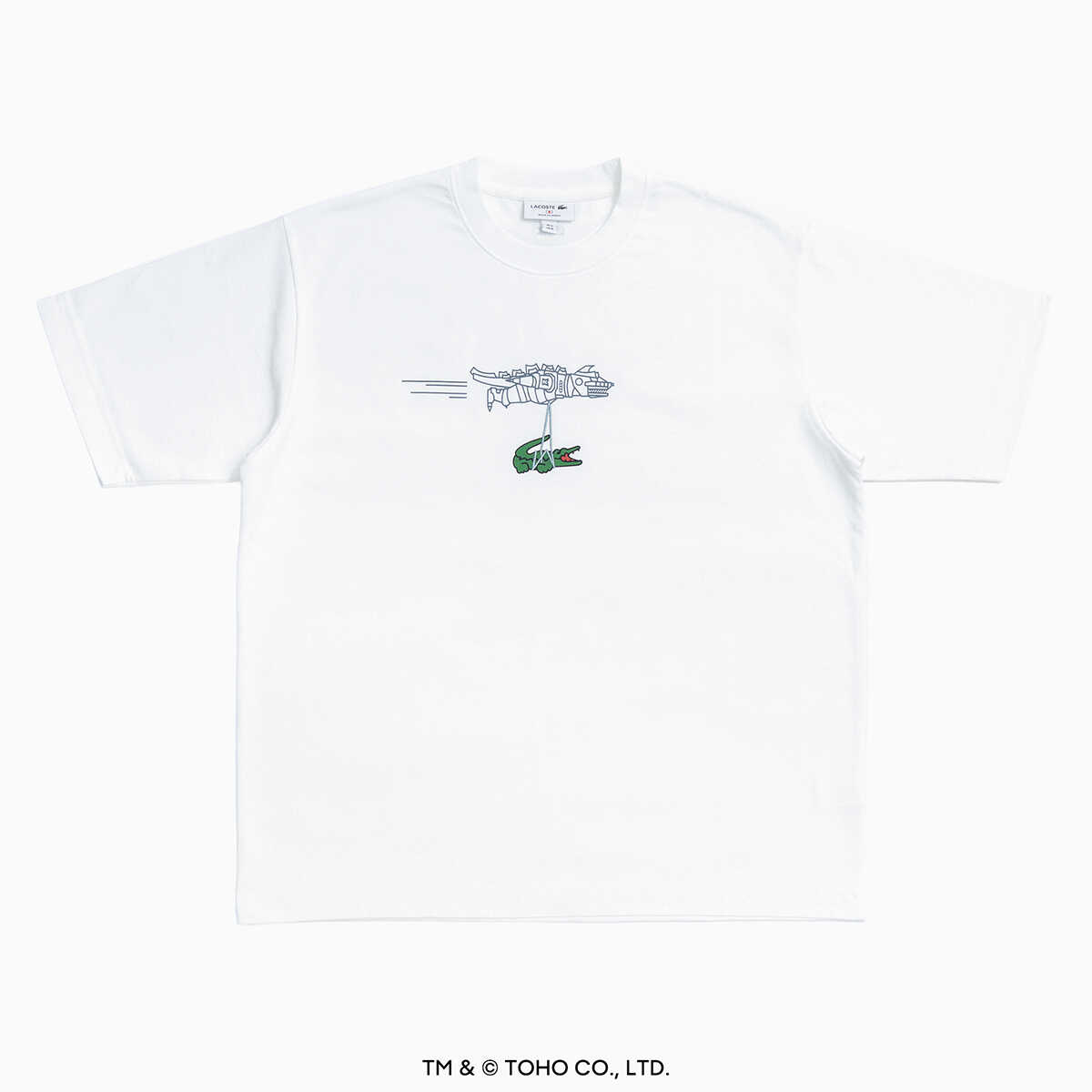 4/25(土)よりラコステ 新宿店にて先行販売、5/29(金)よりラコステ取扱店舗、公式オンラインストアにて発売予定。ホワイトのメカゴジラ Tシャツ1万6500円(ラコステ/ラコステお客様センター)