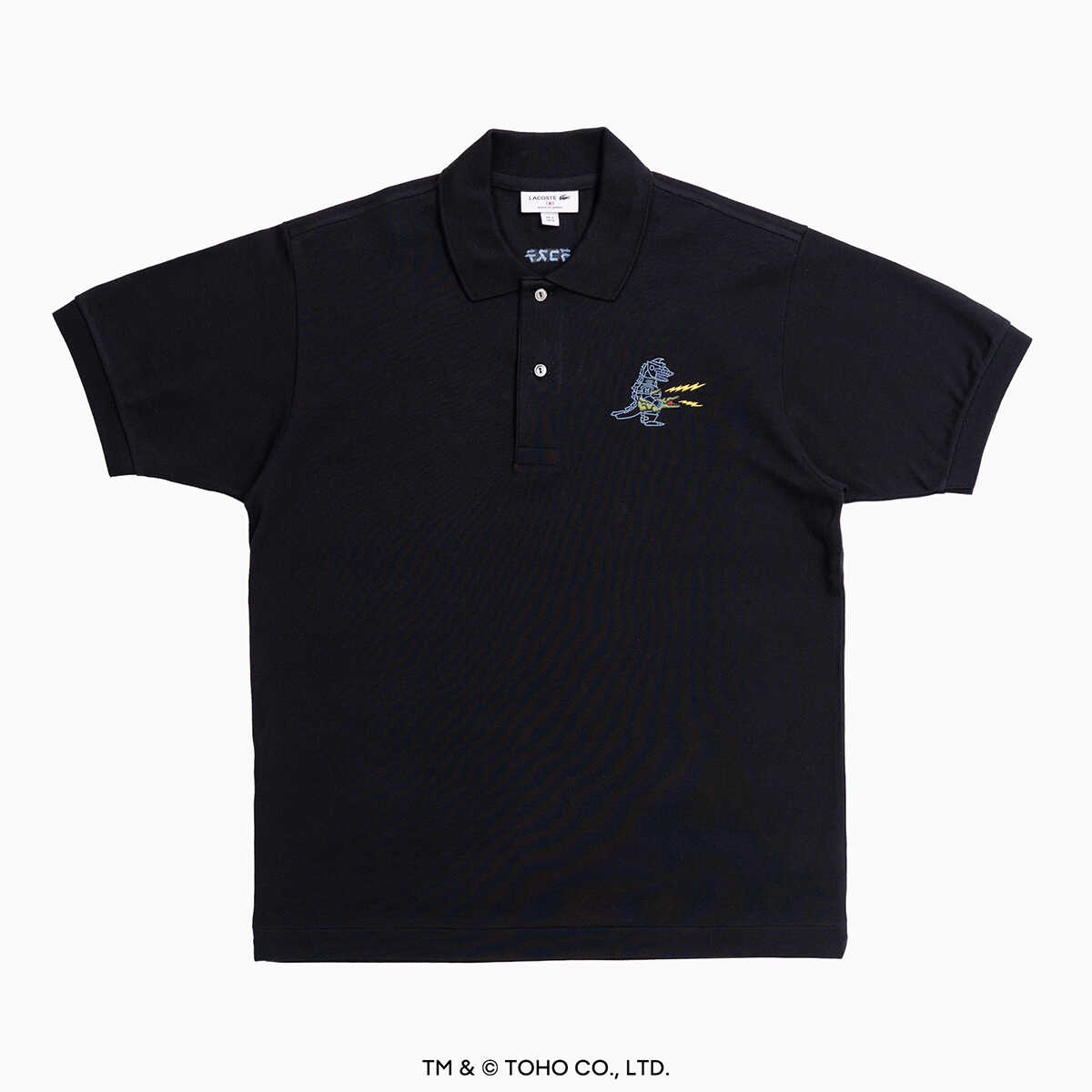 5/29(金)より発売予定。ブラックのメカゴジラ ポロシャツ2万2000円(ラコステ/ラコステお客様センター)