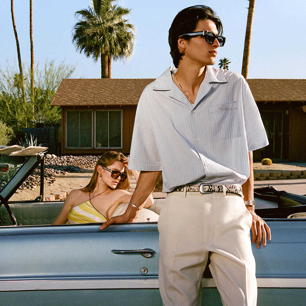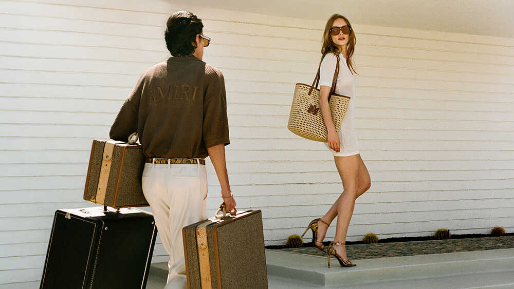 カリフォルニアの夏が持つ、あの特有の高揚感と余白のある時間。〈アミリ〉の2026年ハイサマーコレクションは、その空気感をブランドの美学で再構築したもの。今季の舞台は、コロラド砂漠の中に佇むリゾート、パームスプリングス。ハリウッドのスターたちが静養と享楽を求めて集ったこの地は、いまなおミッドセンチュリーモダン建築と豊かな緑が共存する、特別な時間が流れる場所として知られる。眩い光に満ちたその風景は、クリエイターたちの感性を刺激し続けてきた。